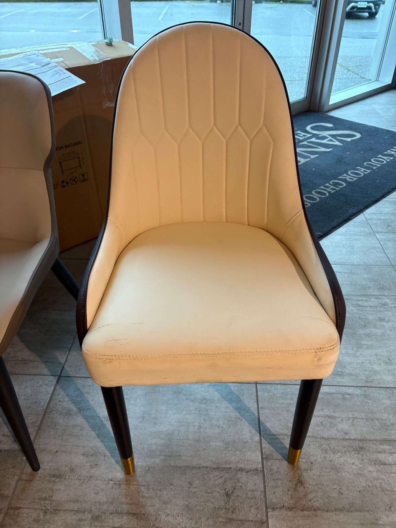 Set of 3 white faux leather dining chairs