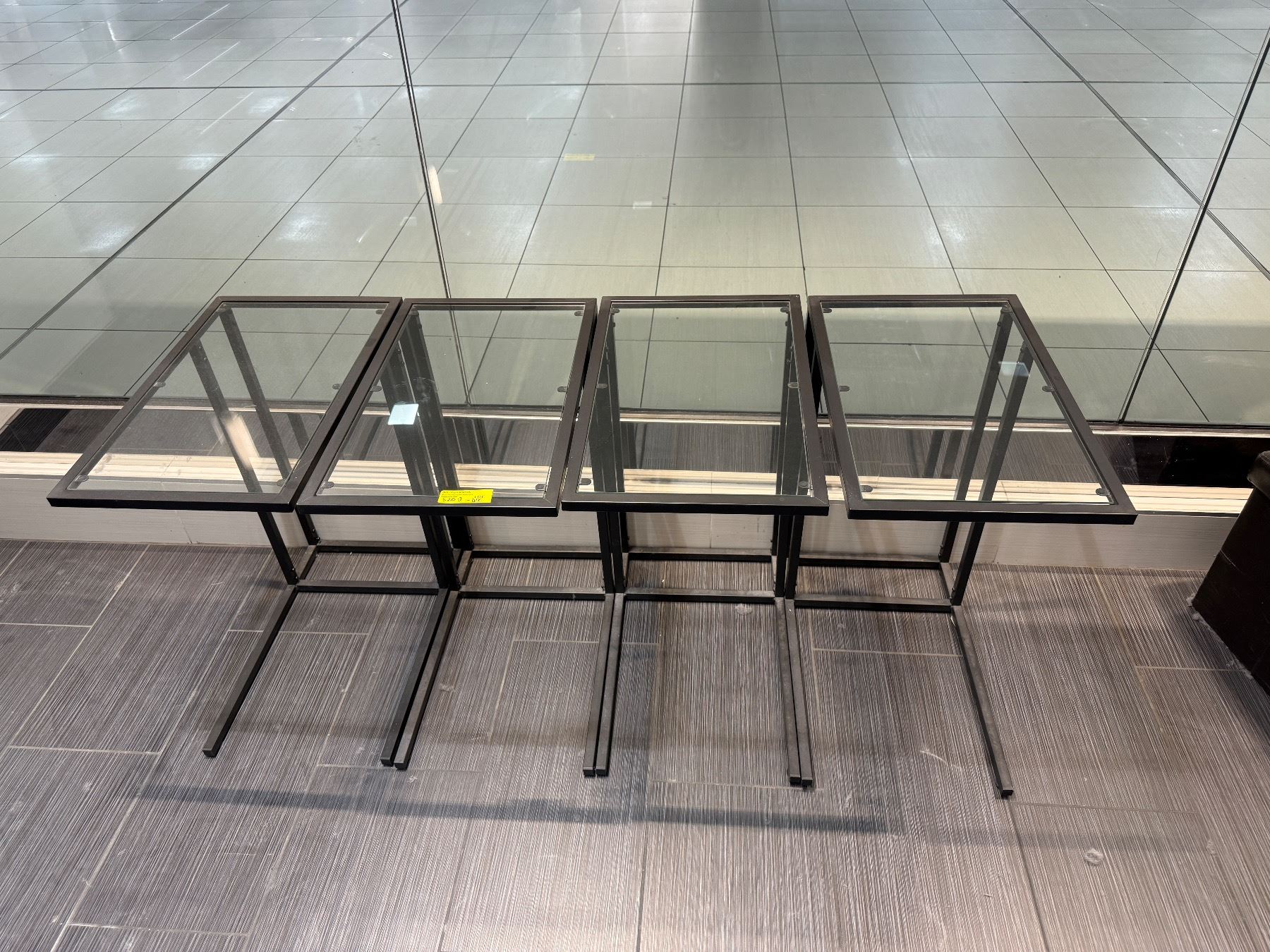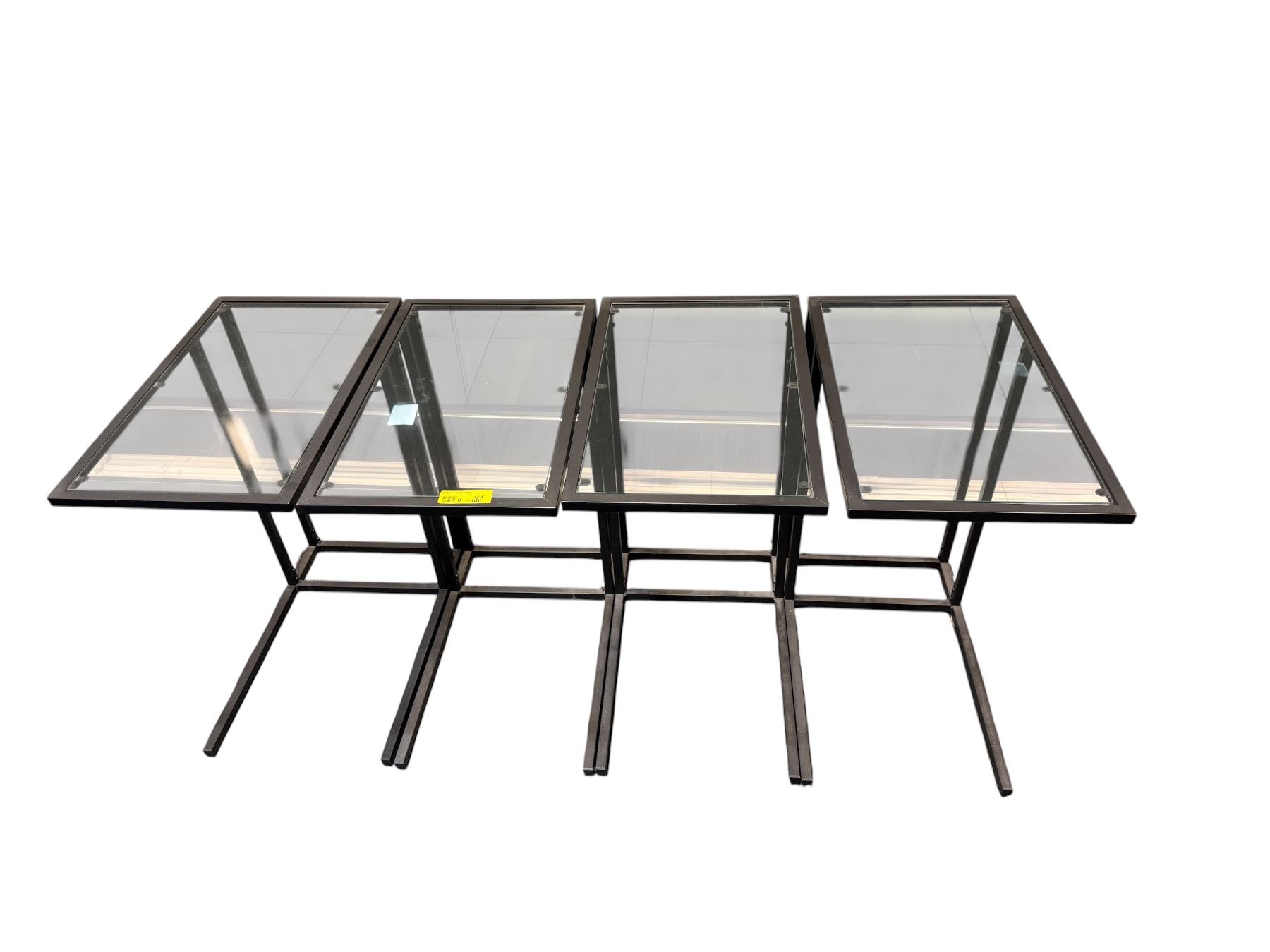 Set of 4 Black Metal C-Frame Side Tables - Smoked Glass & Granite Style Tops