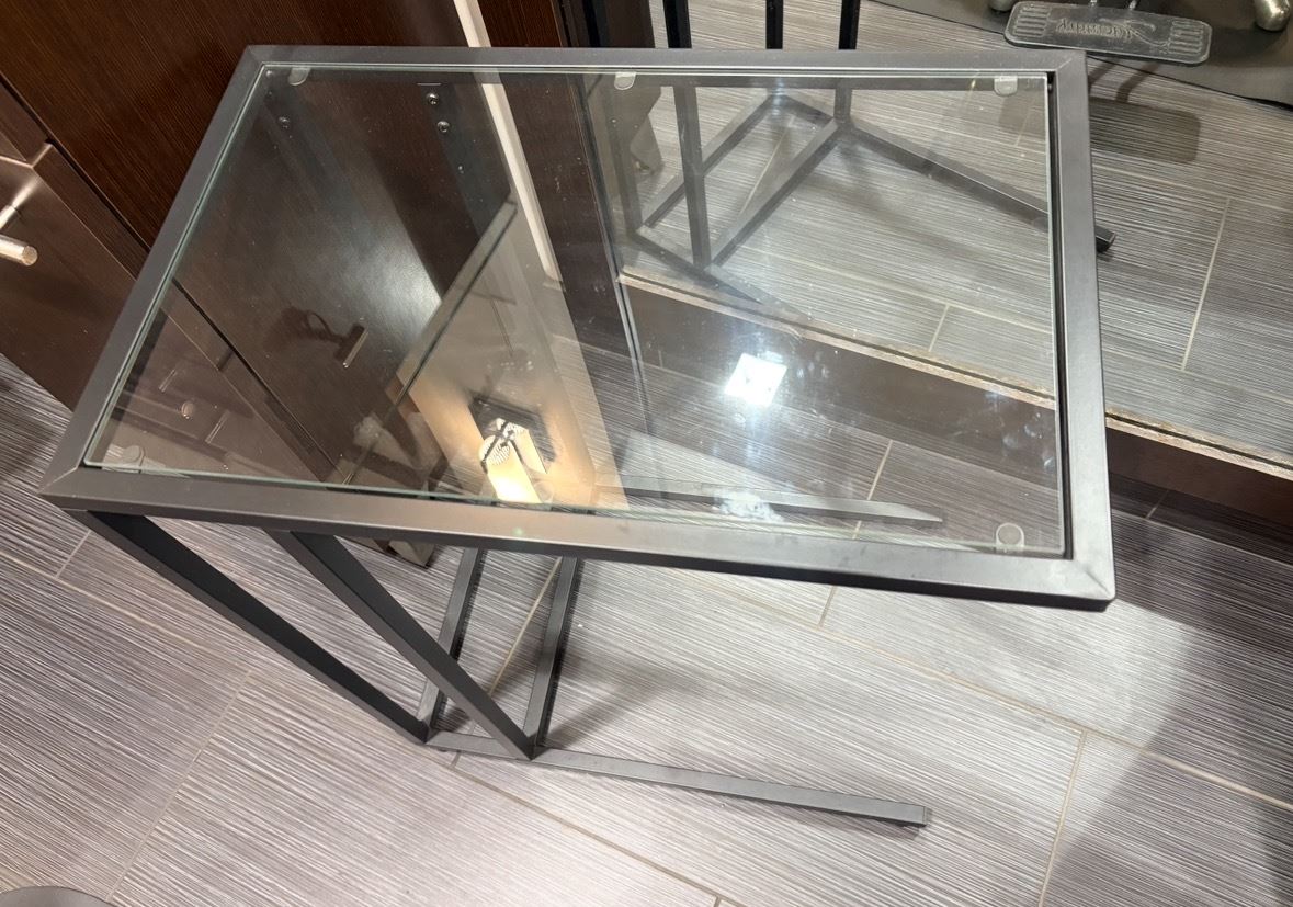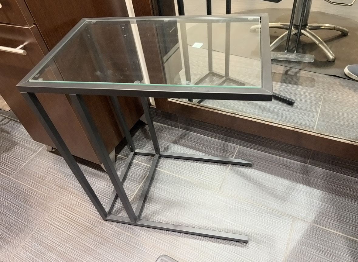 Set of 4 Black Metal C-Frame Side Tables - Smoked Glass & Granite Style Tops