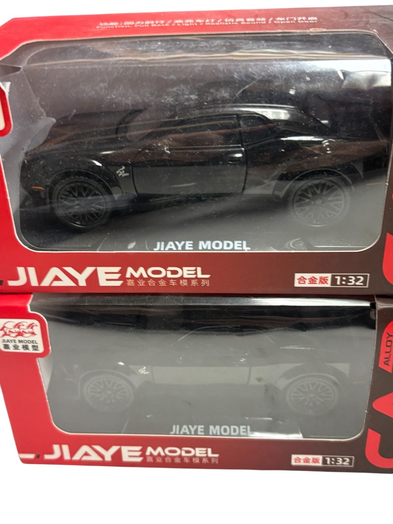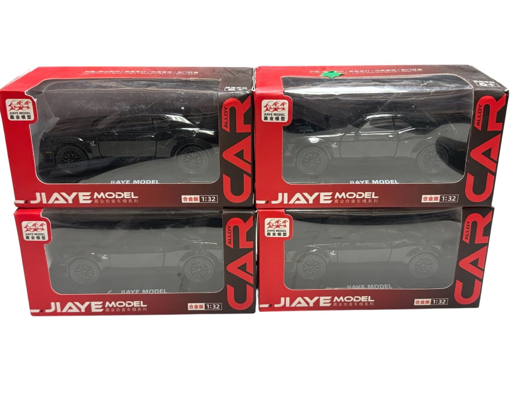 Set of 4 diecast cars by Jiaye in 1:32 scale. Each model features metal bodies with plastic detailing. Includes opening doors and rubber tires for realistic design. Exact car Suitable for display or as collectible replicas. Item is as pictured.