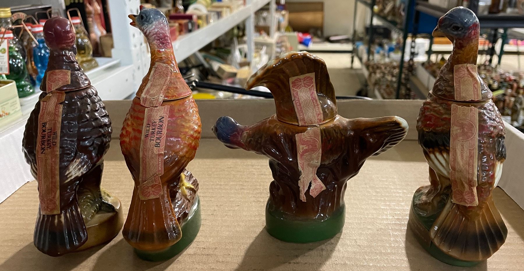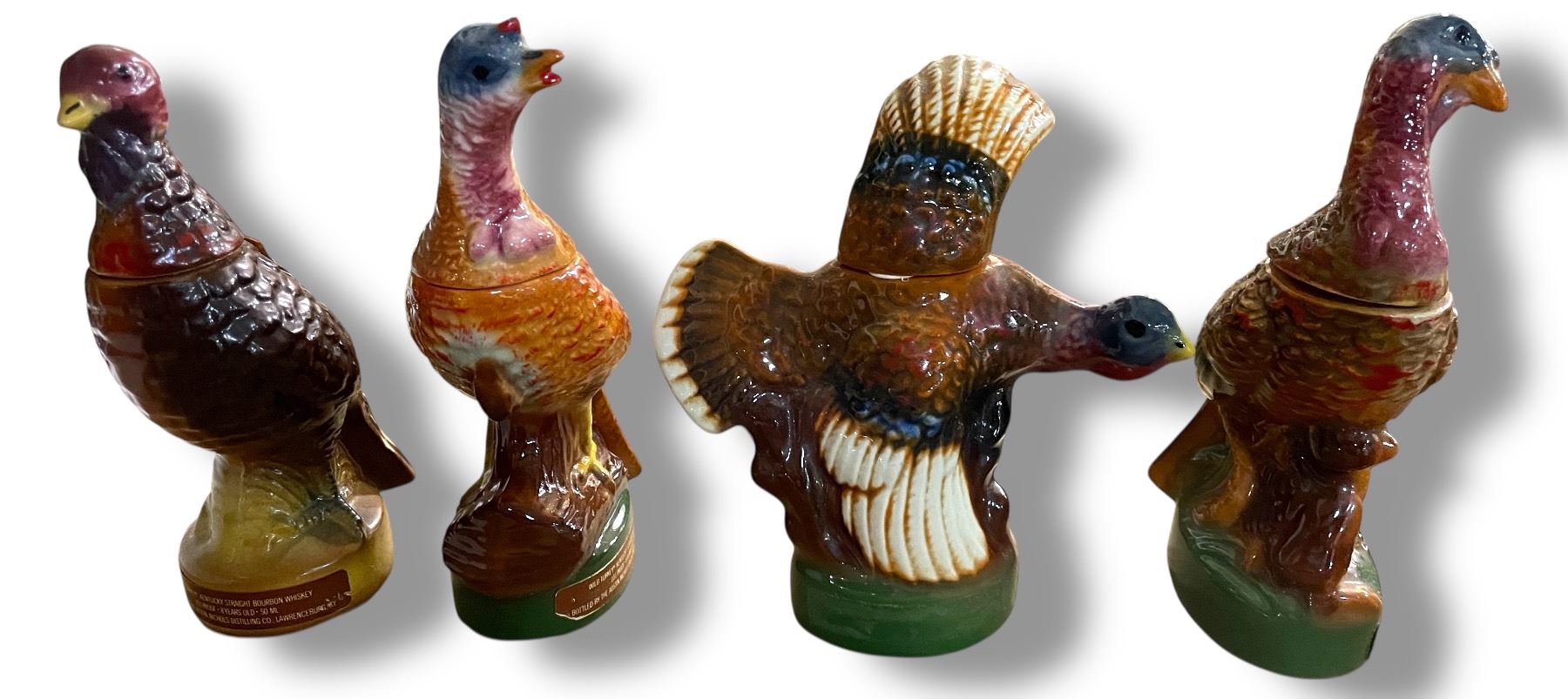 Set of 4: Vintage 1980s Austin Nichols Wild Turkey No.1-4" Empty Mini Ceramic Liquor Decanter - Limited Edition