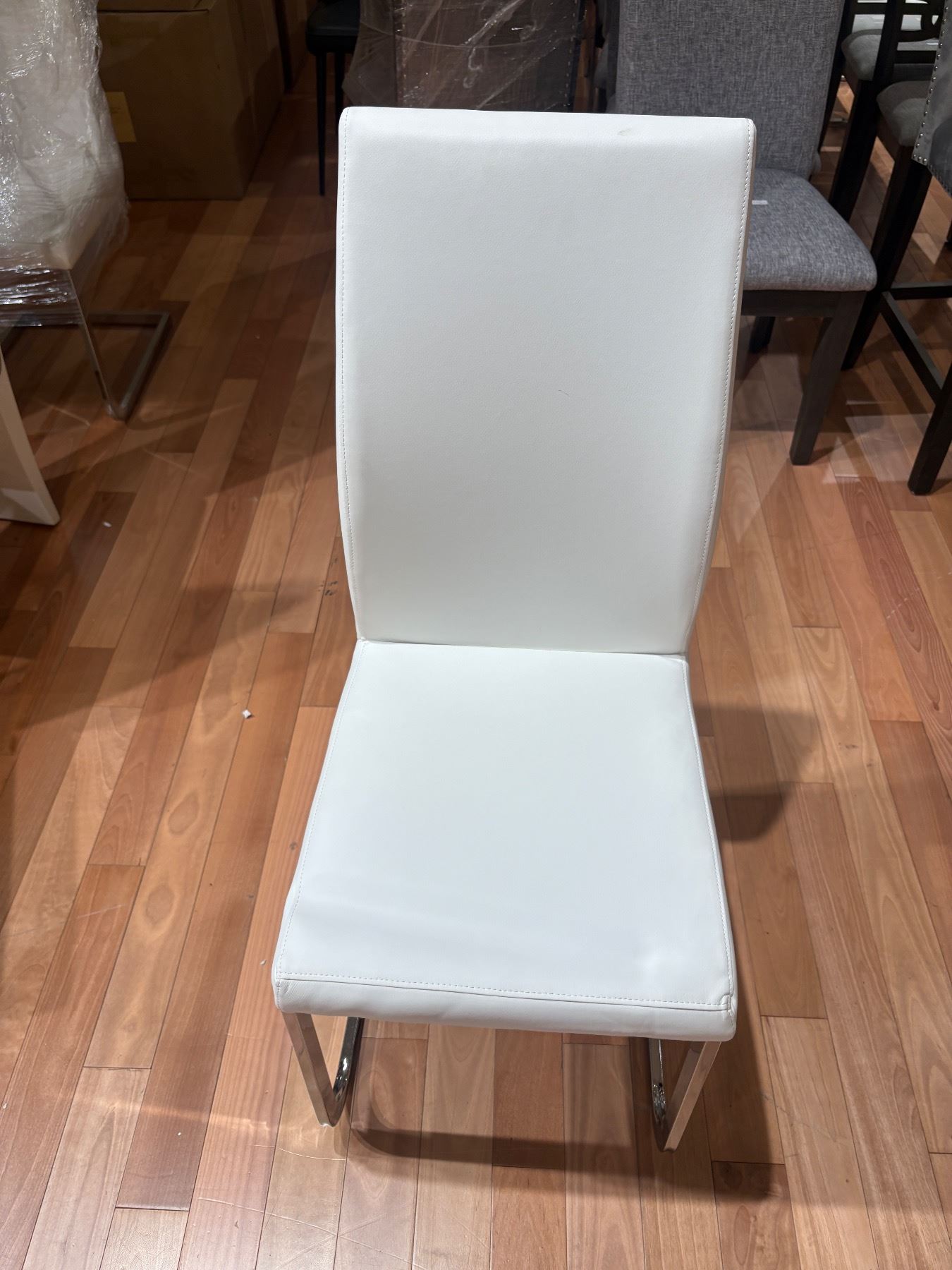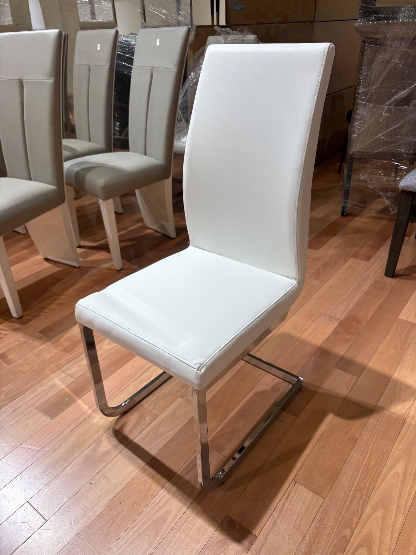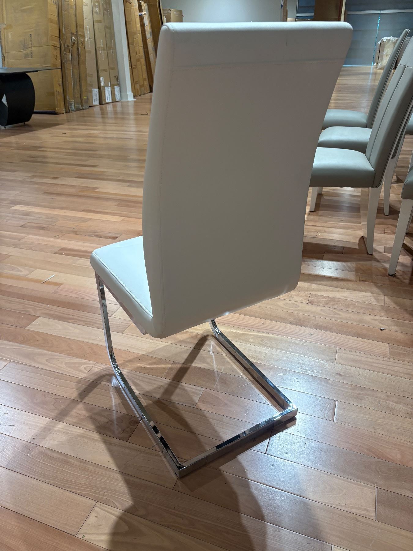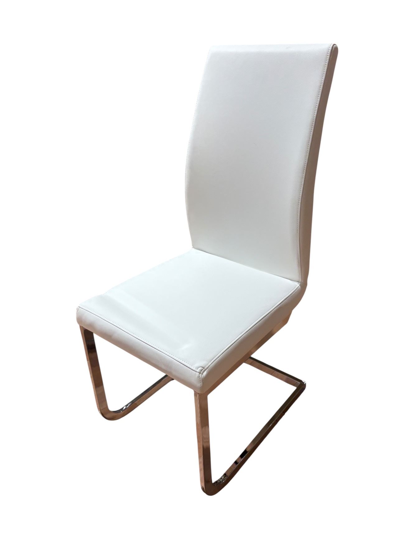 Set of 4 contemporary white faux leather dining chairs with chrome legs