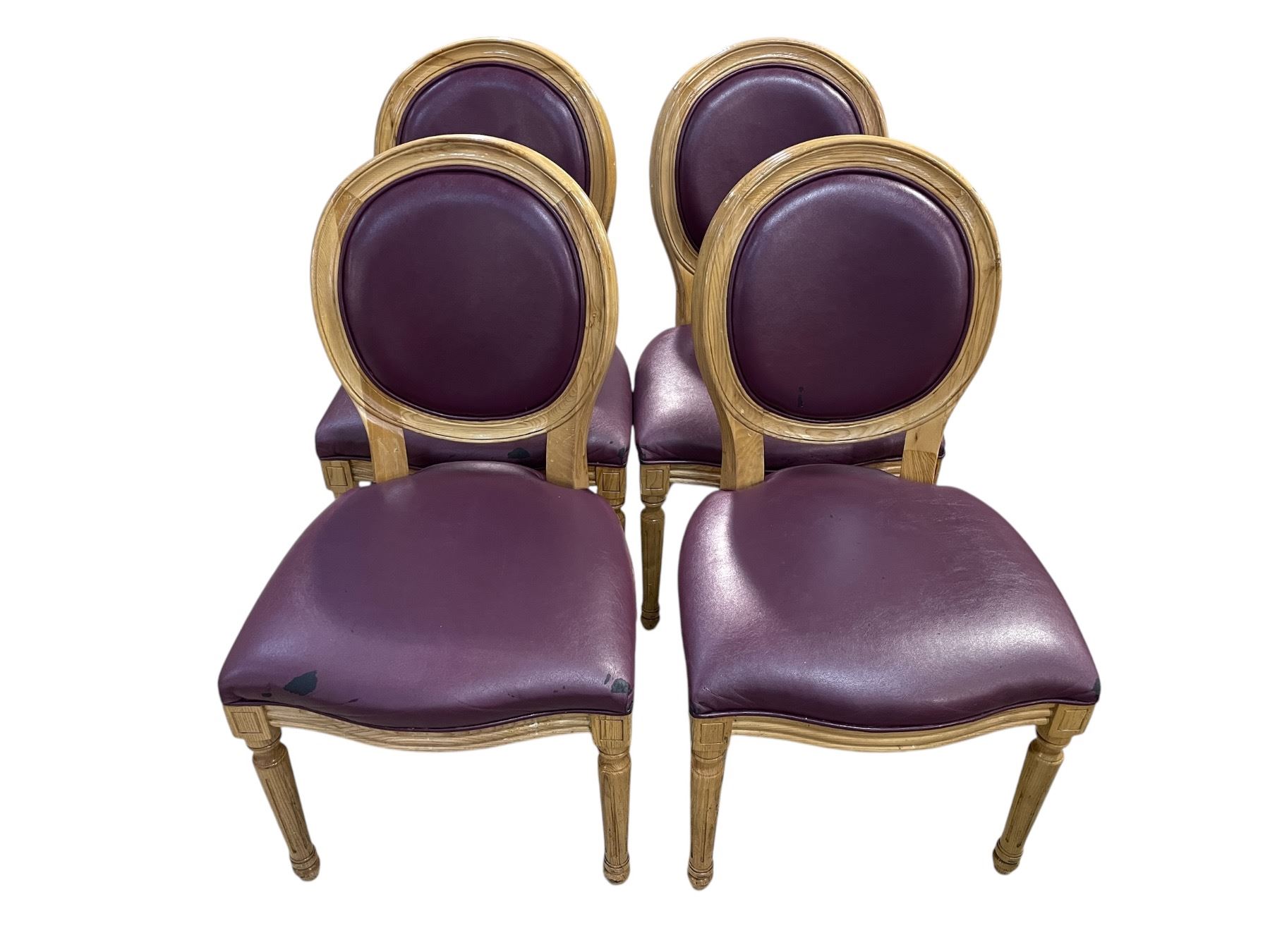 Set of 4 purple leather chairs