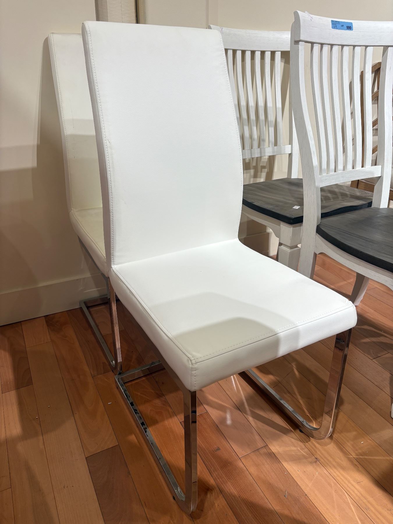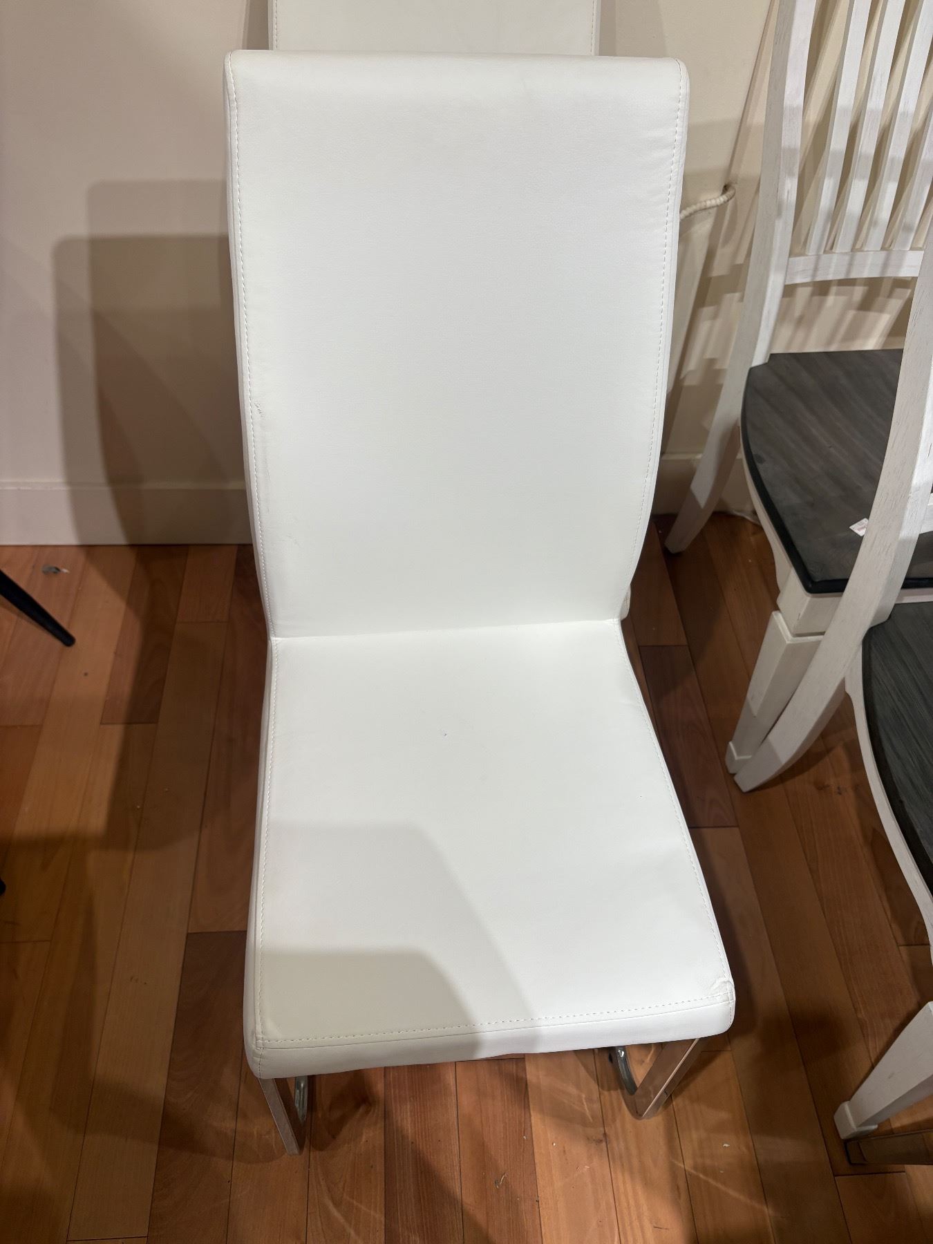 Set of 4 white faux leather dining chairs