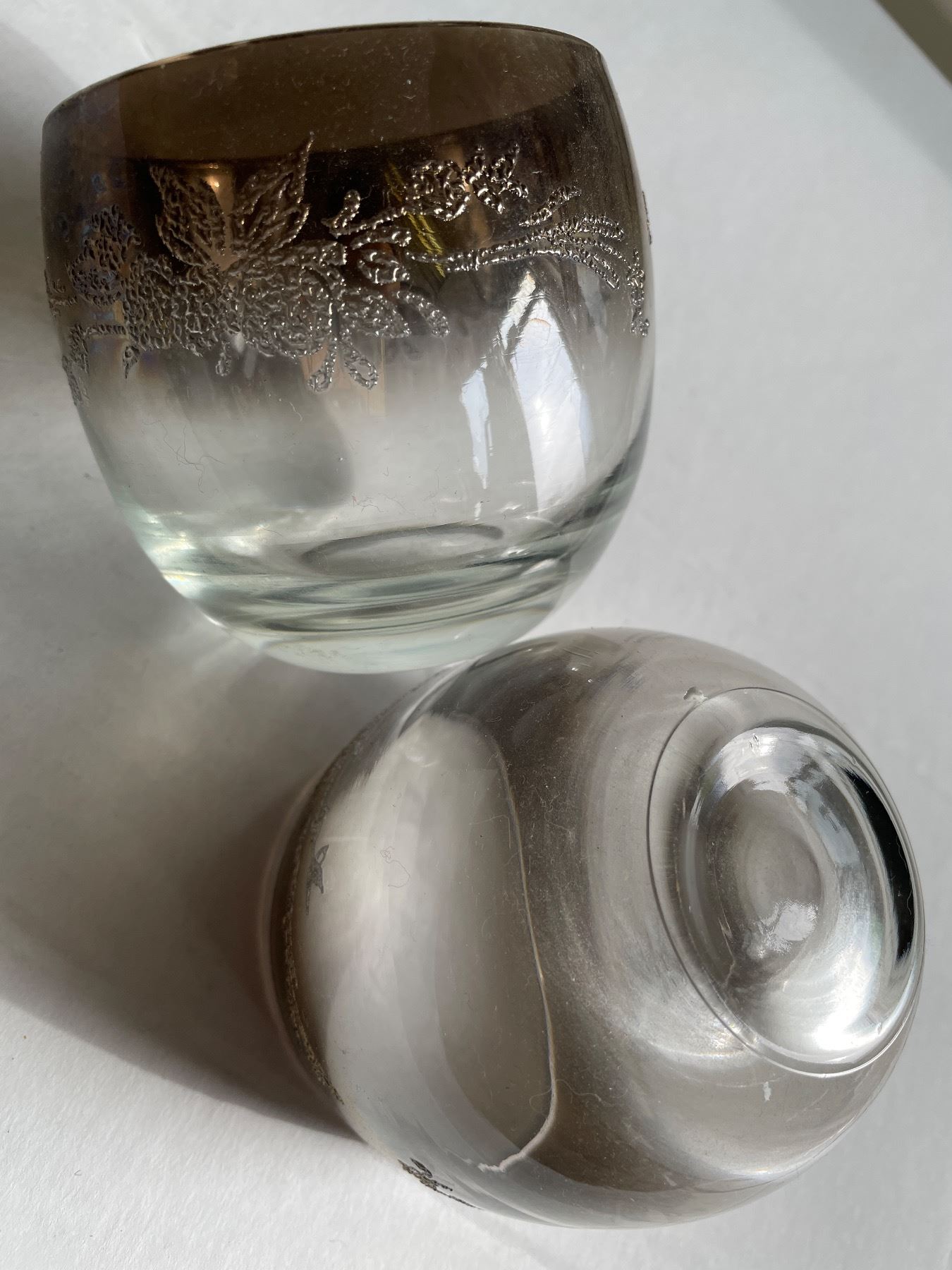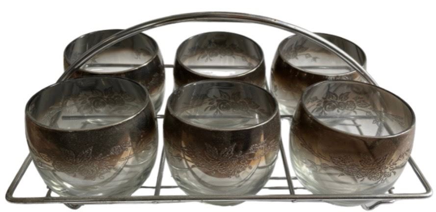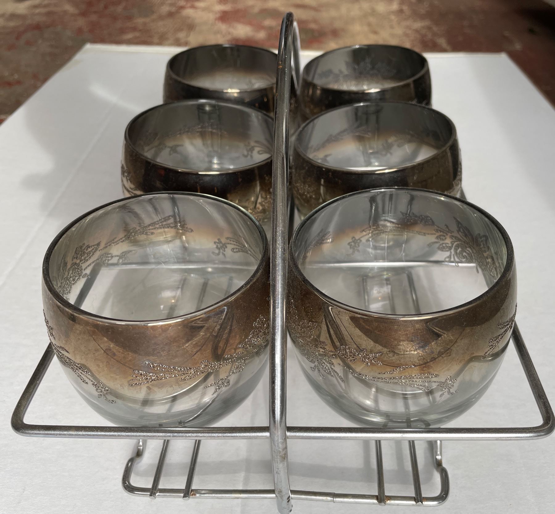 Set of 6 Silver Fade Floral Lowball Glasses in Metal Carrier