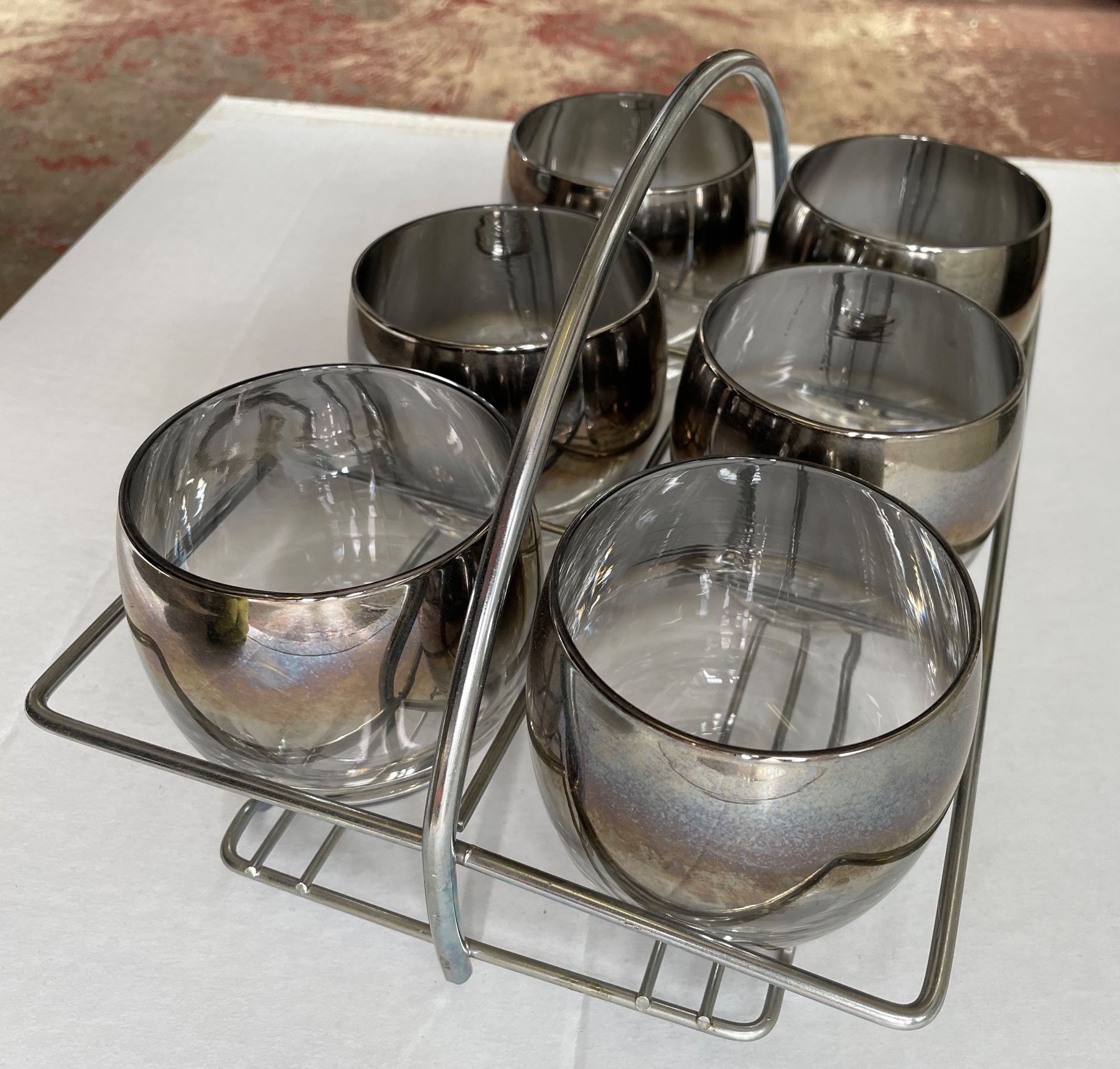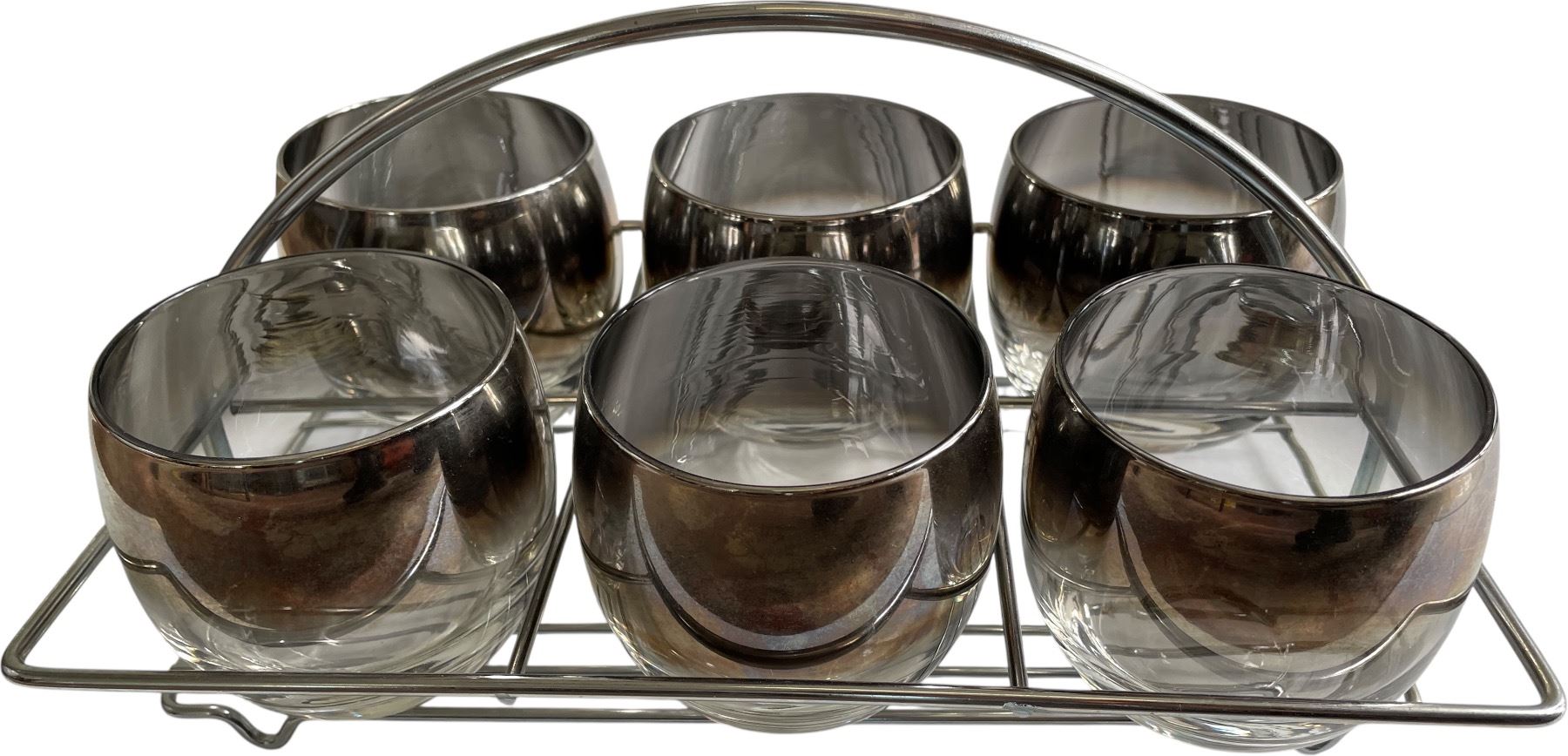 Set of 6 Silver Fade Lowball Glasses in Metal Carrier