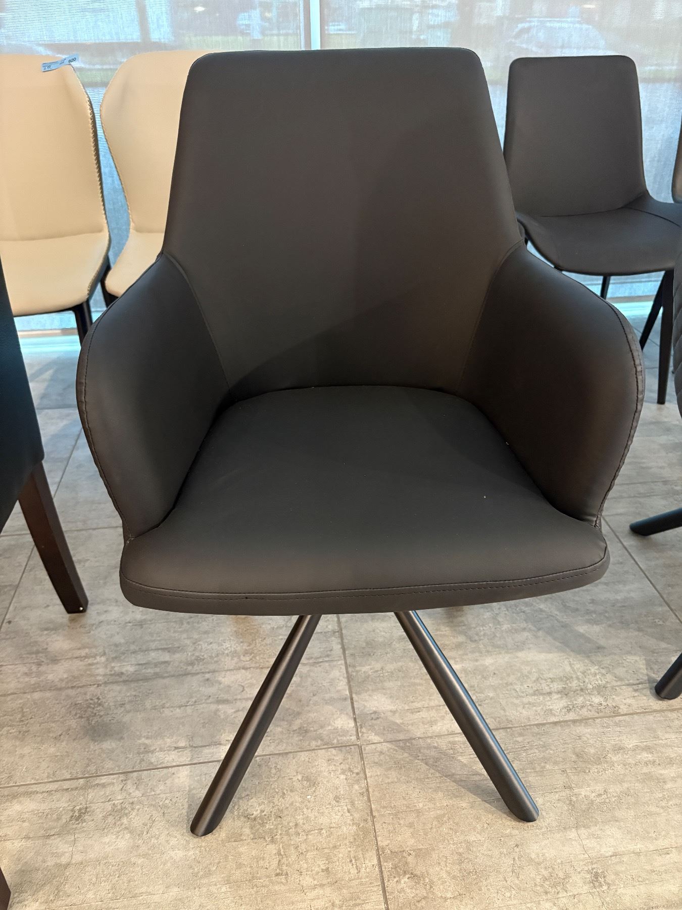 Set of 6 new black modern dining chairs faux leather - 5 new in box, 1 open box