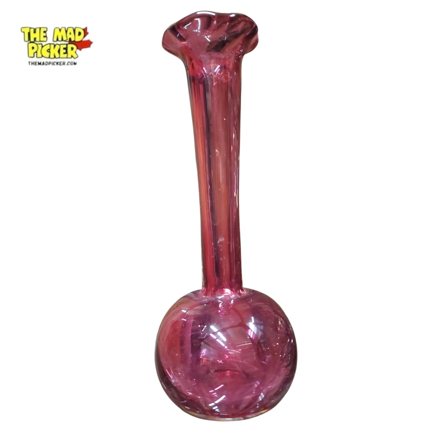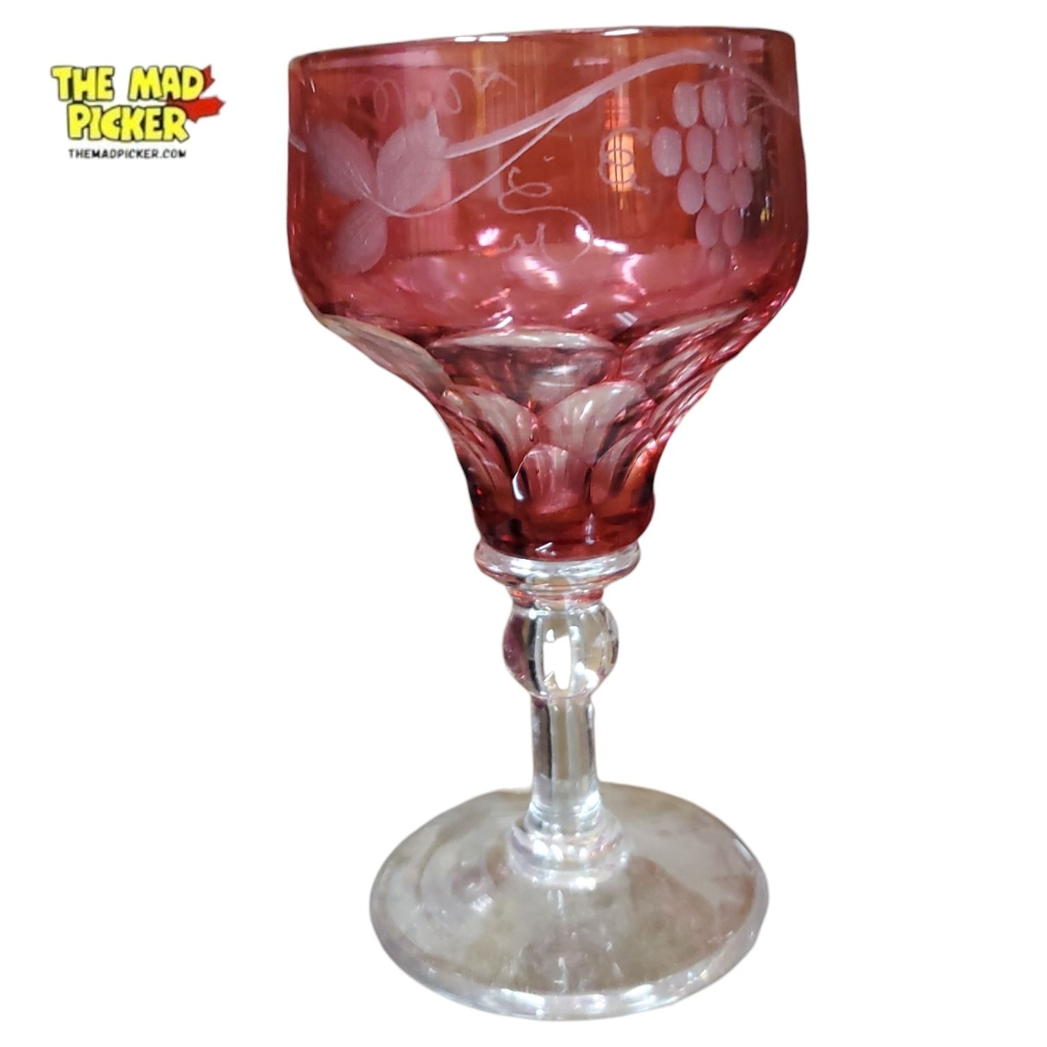 Set of 8 Cranberry Glass Goblets and Matching Vase Likely Moondrops Pattern