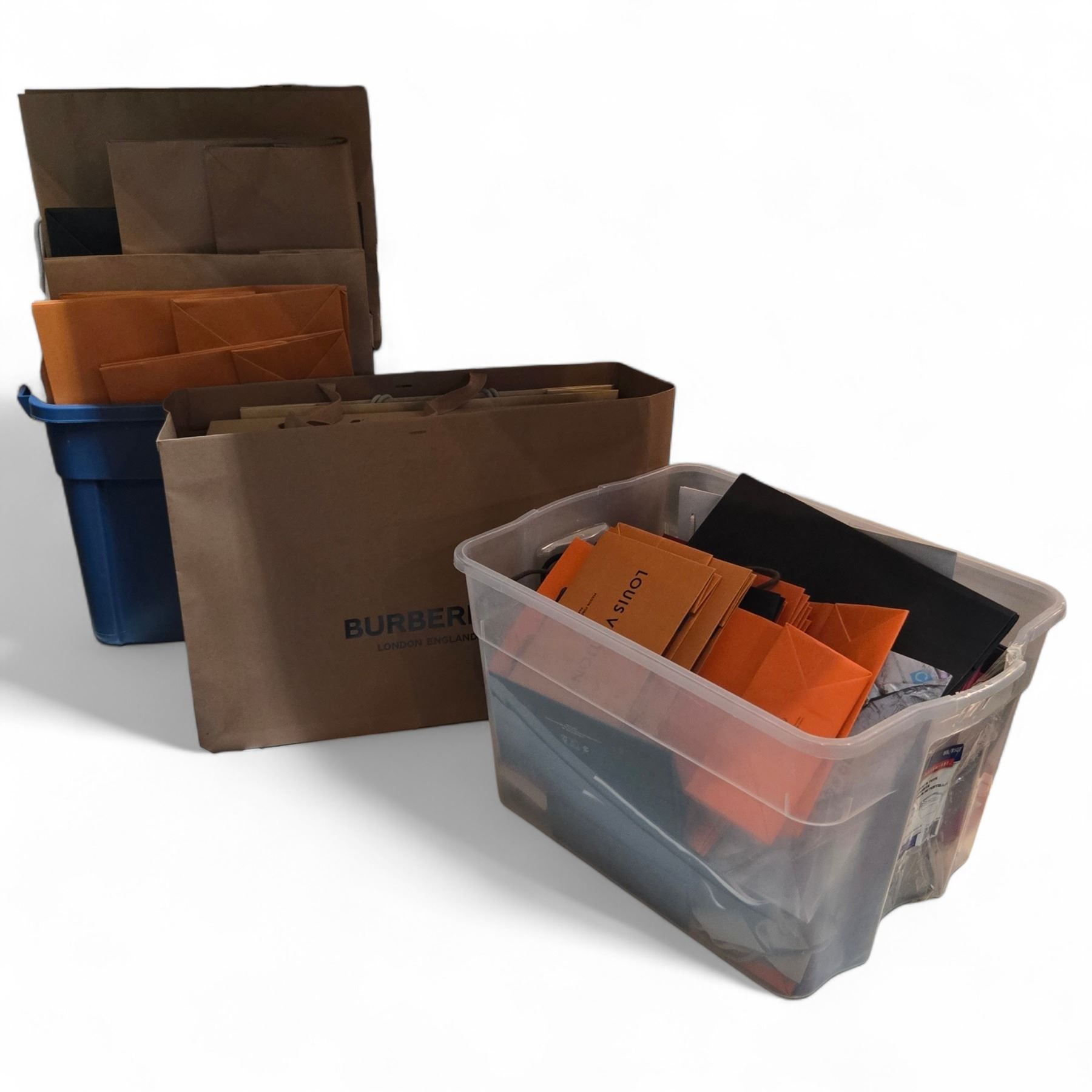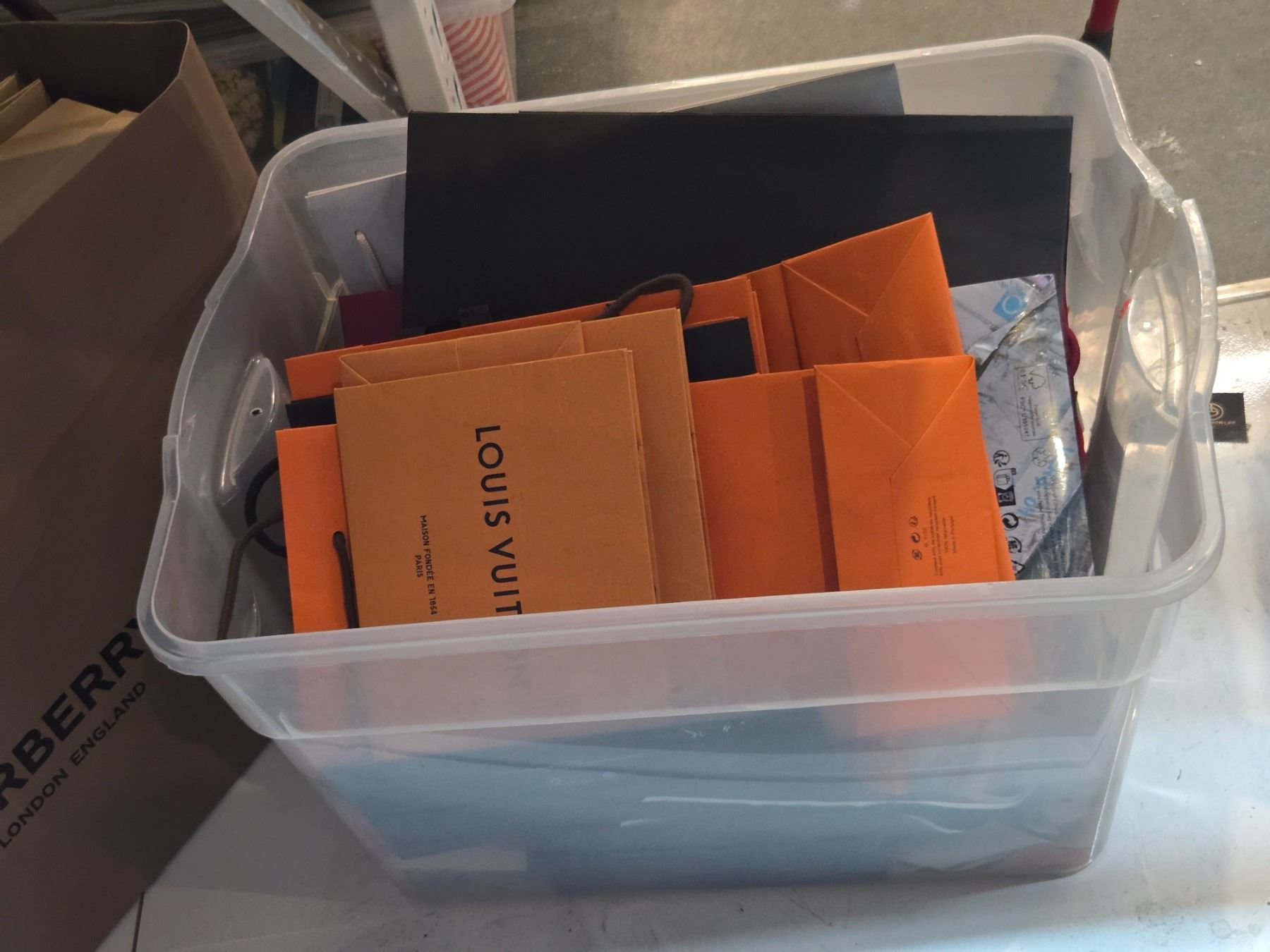 Shelf - Large Lot of Dersigner Bags (Burberry, Louis Vuitton, Hermes, Etc.)