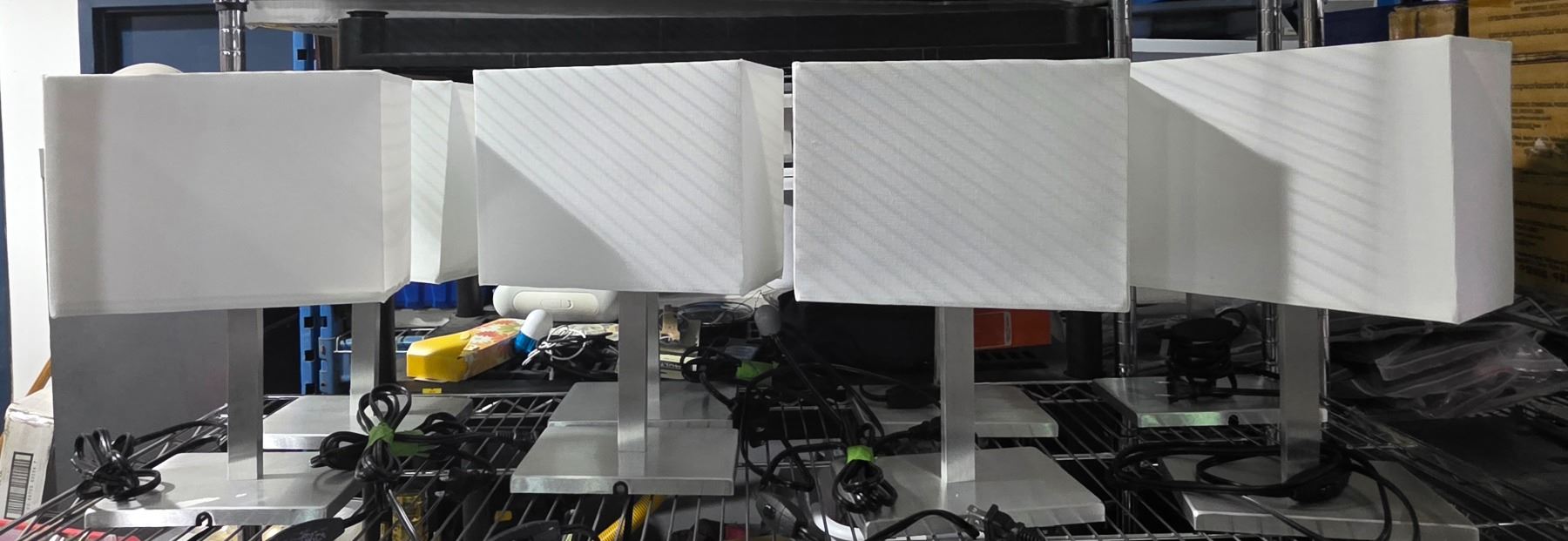 Shelf Lot of Metal Frame w/White Shade Table Lamps
