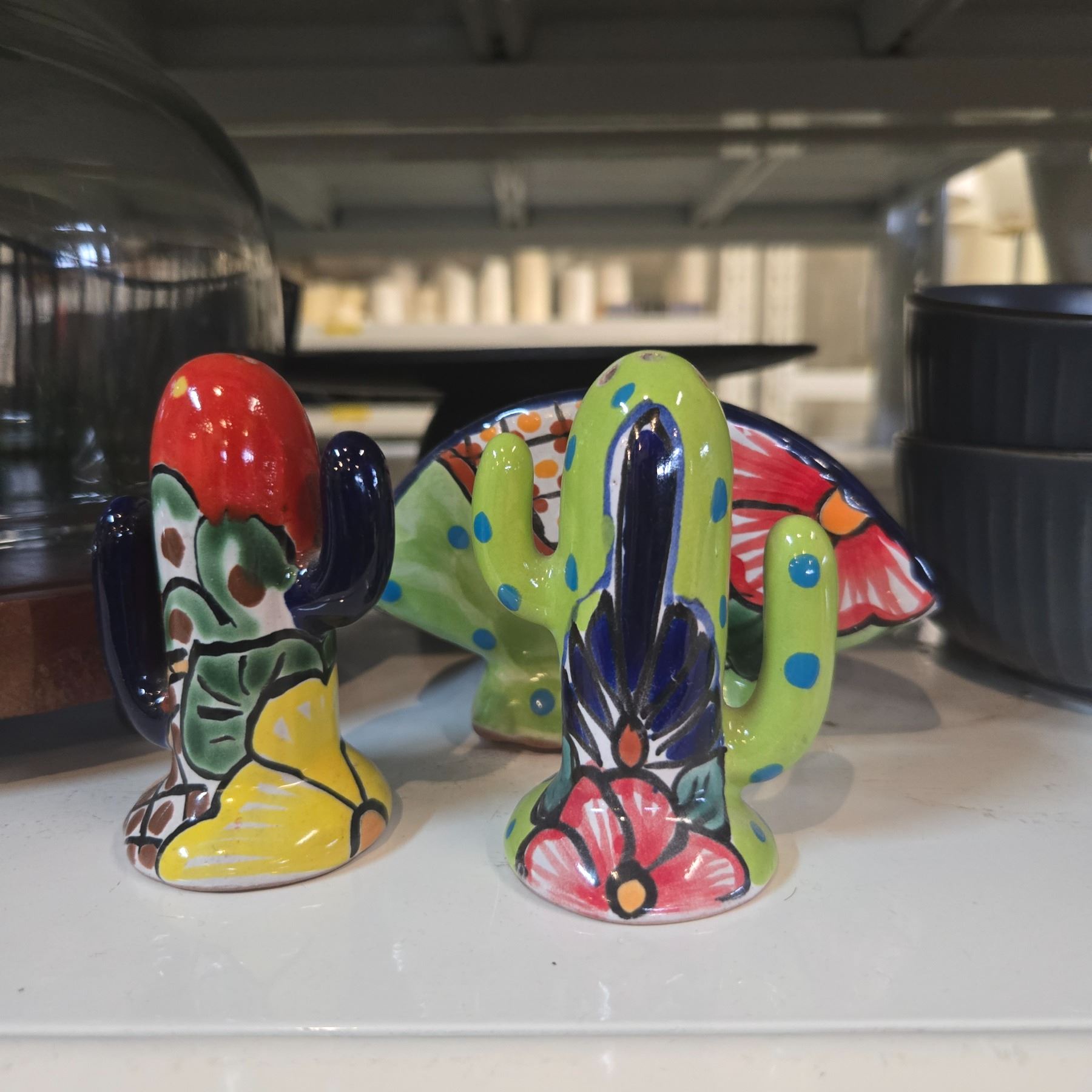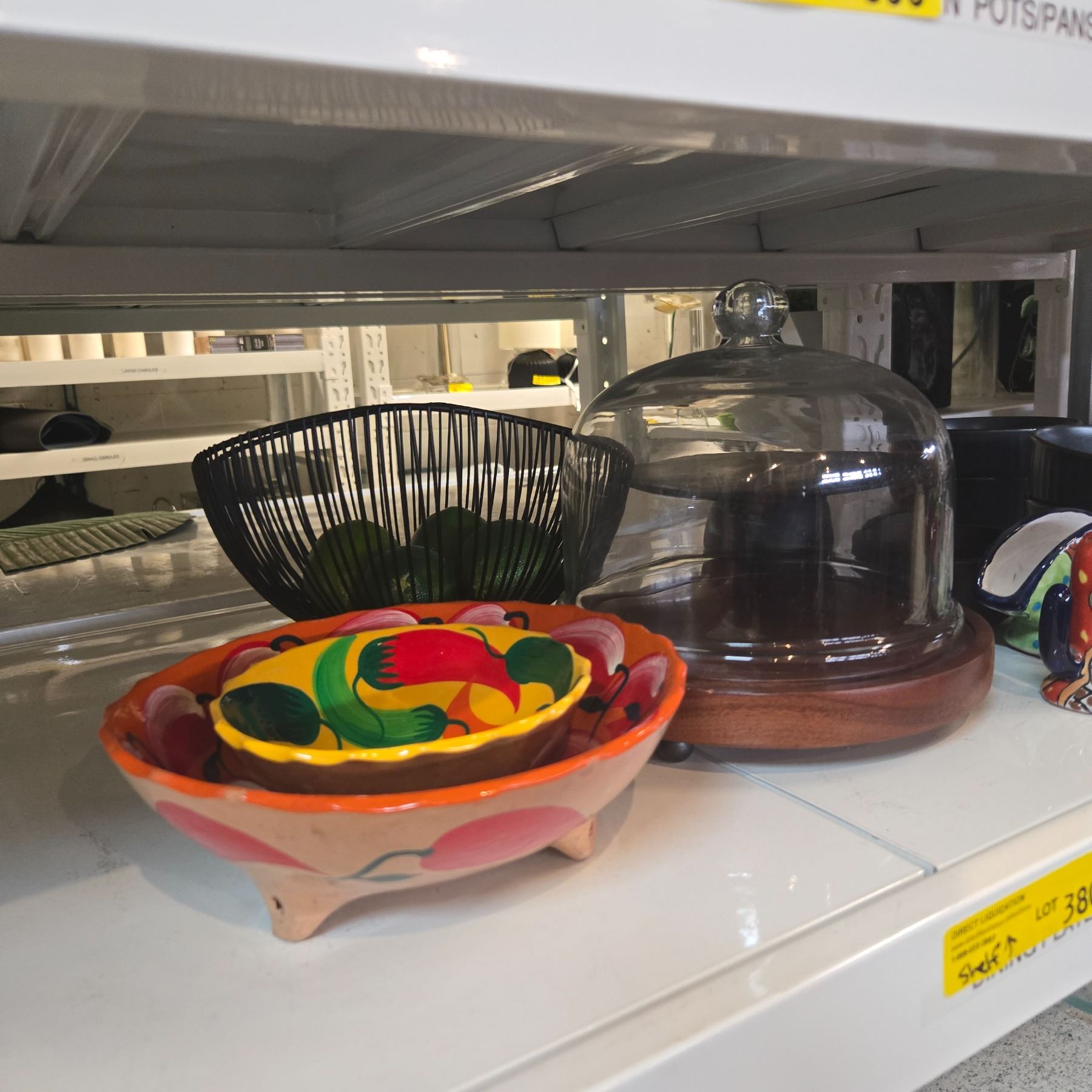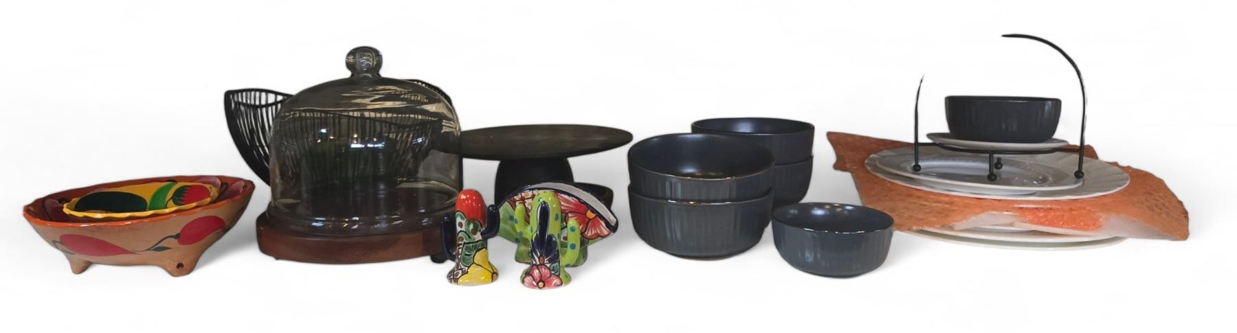 Shelf - Misc. Kitchen Décor Including Plates, Fruit Basket, Bowls, Mexican Style S&P Shakers, Etc.