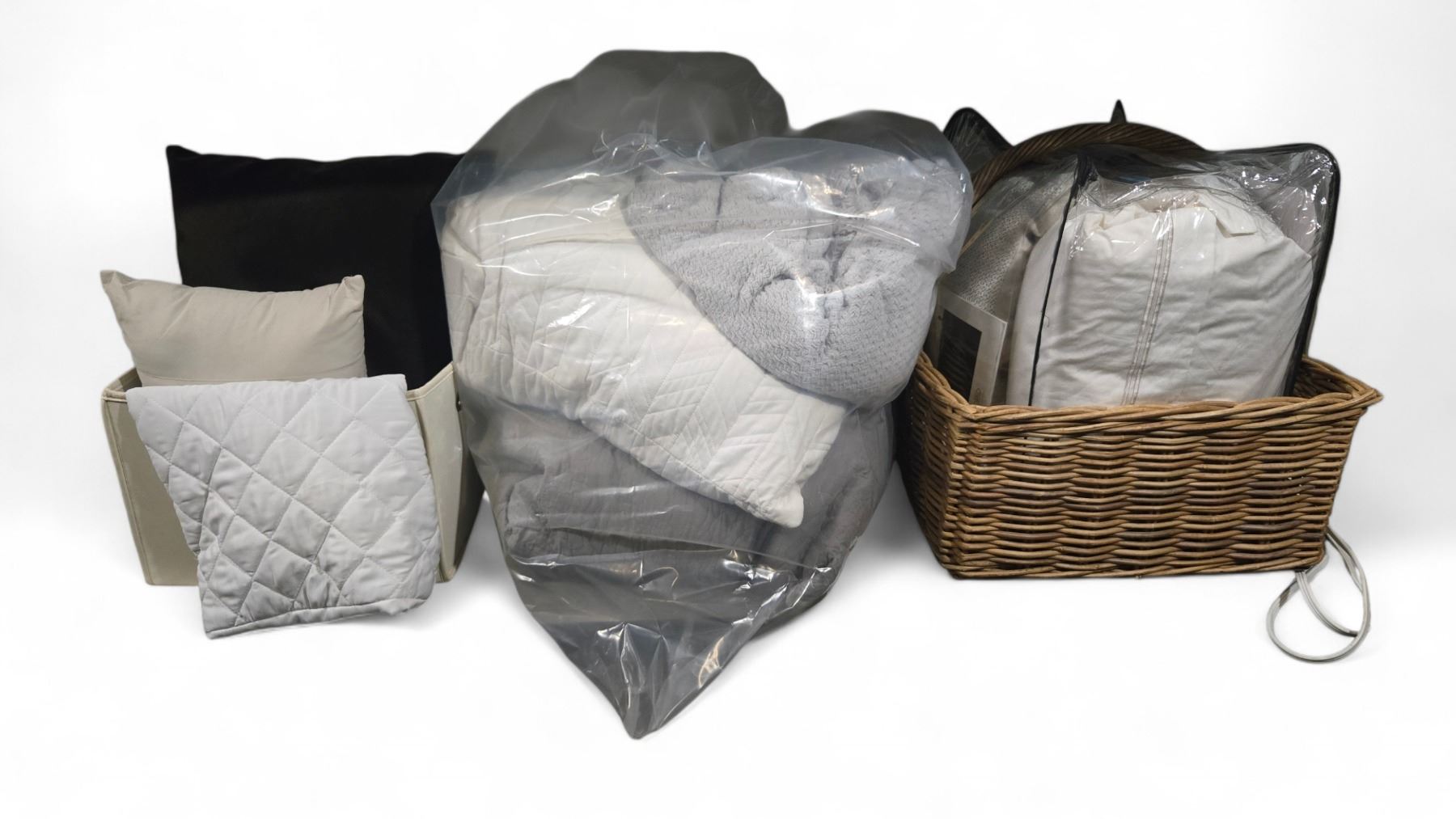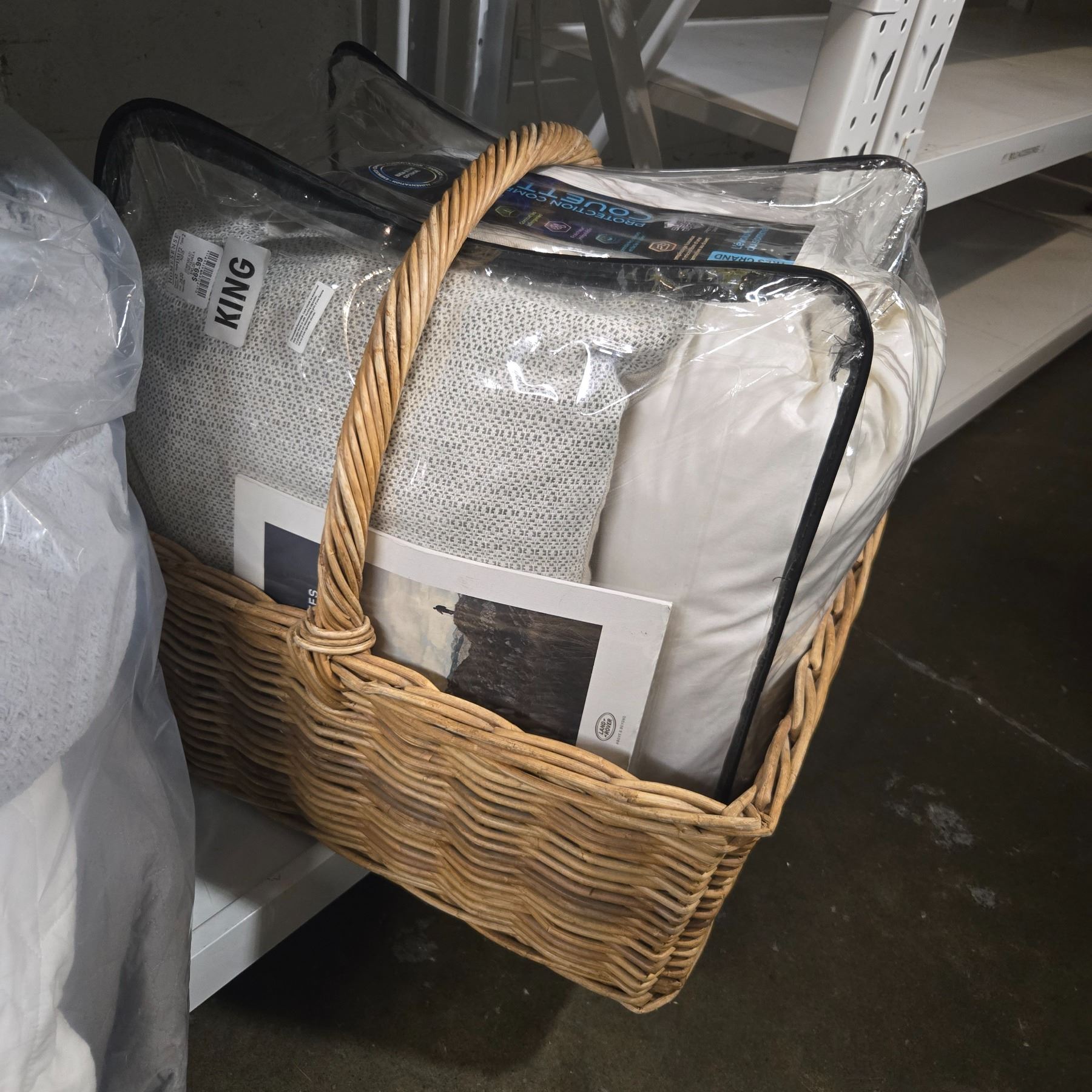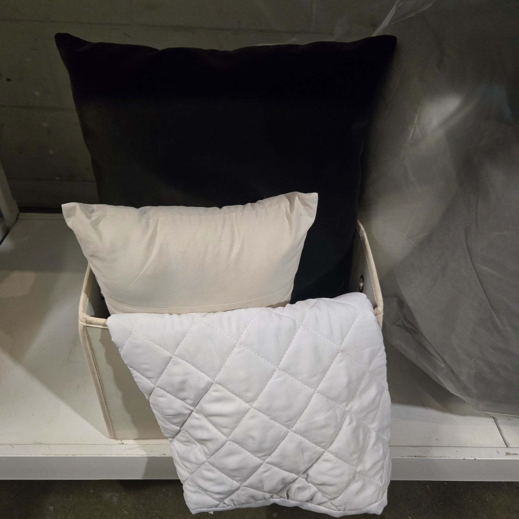 Shelf - Pillows, Blankets, Wicker Basket, Etc.