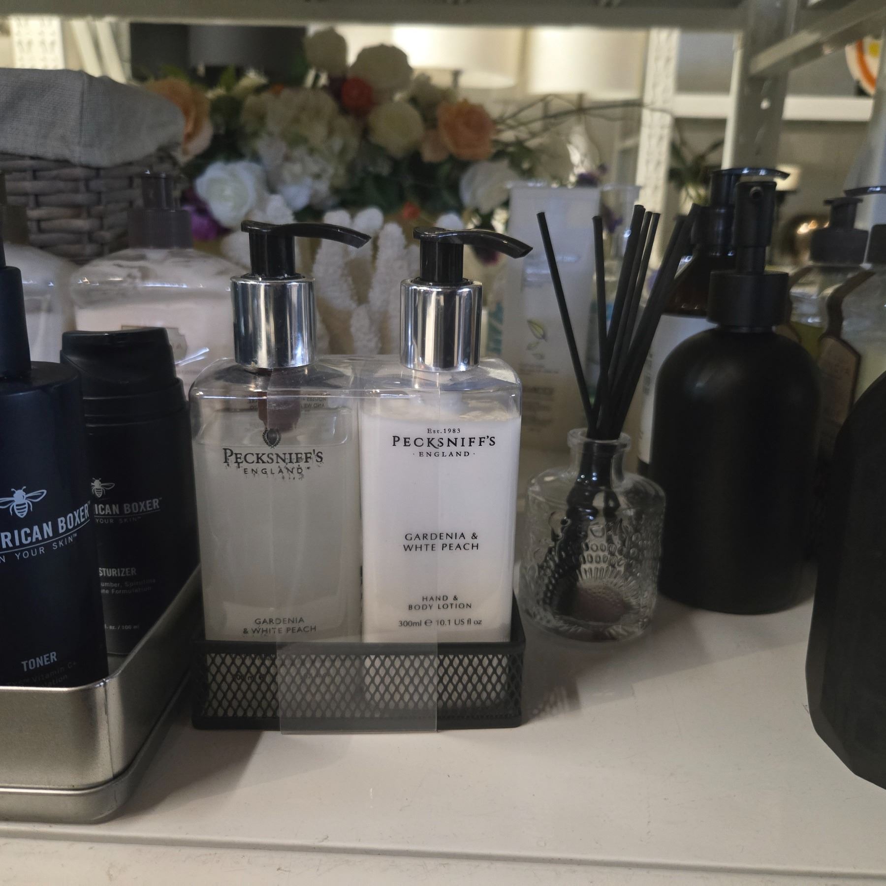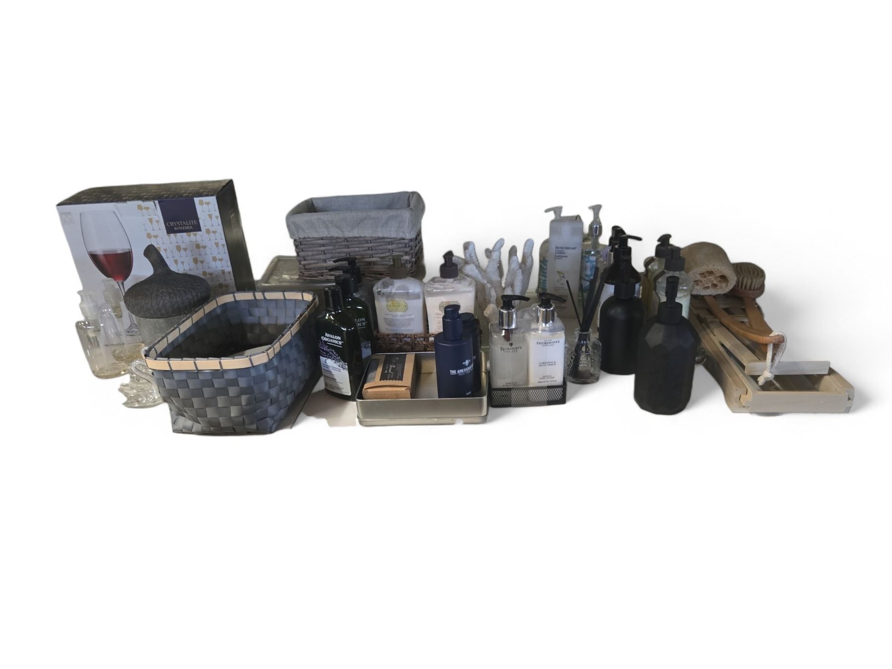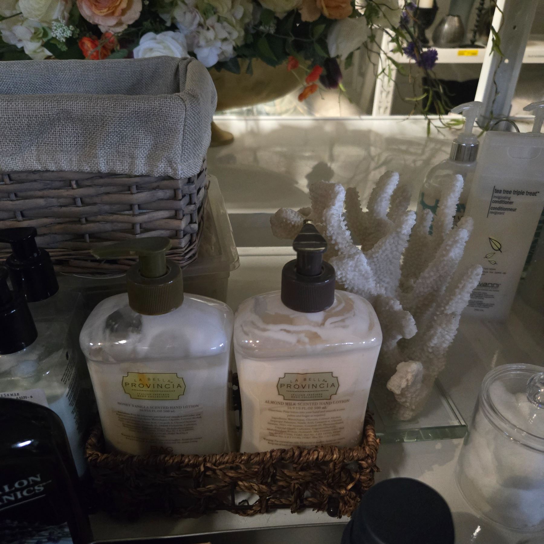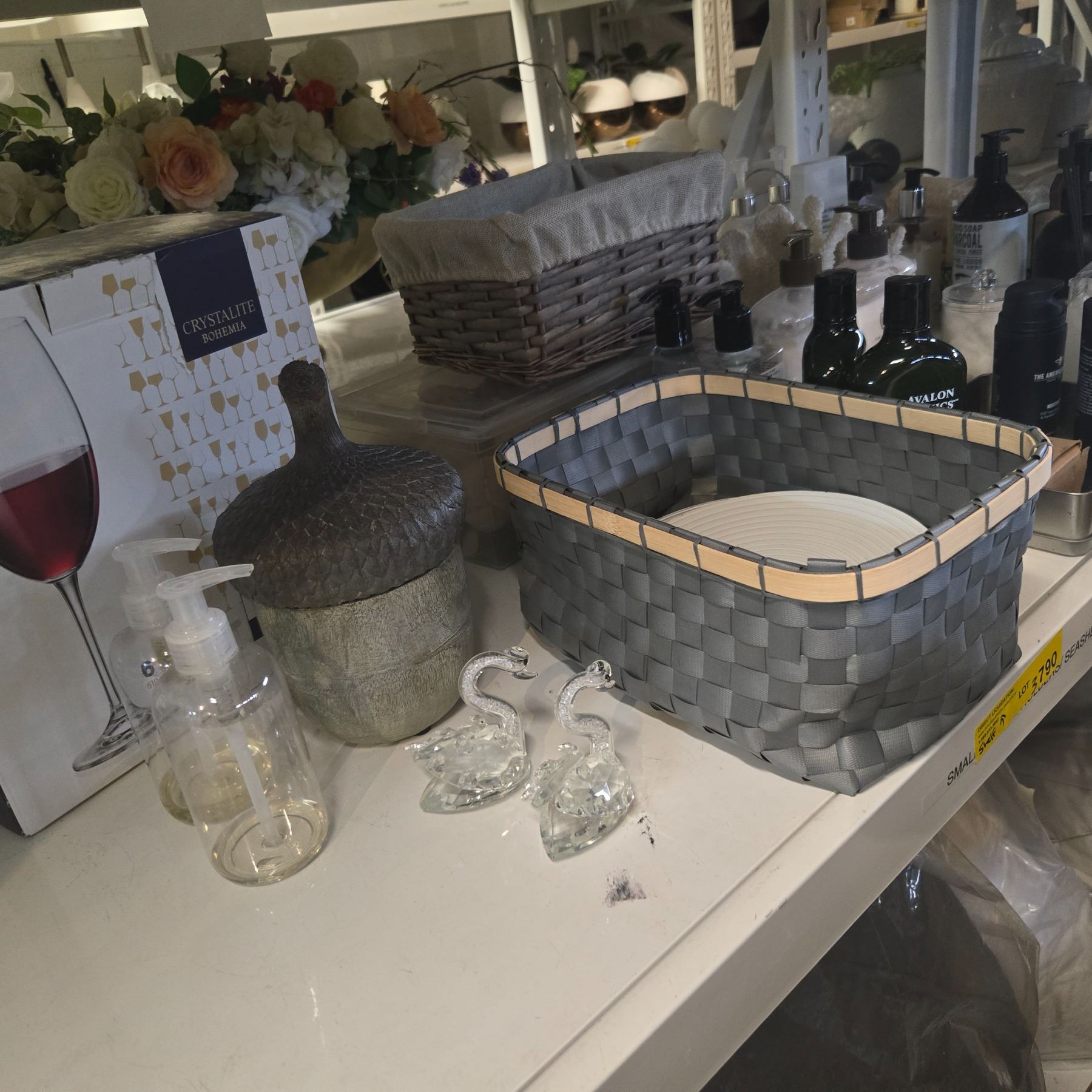 Shelf - Red Wine Glasses, Crystal Swans, Organizers, Lotion, Pump Bottles, Etc.