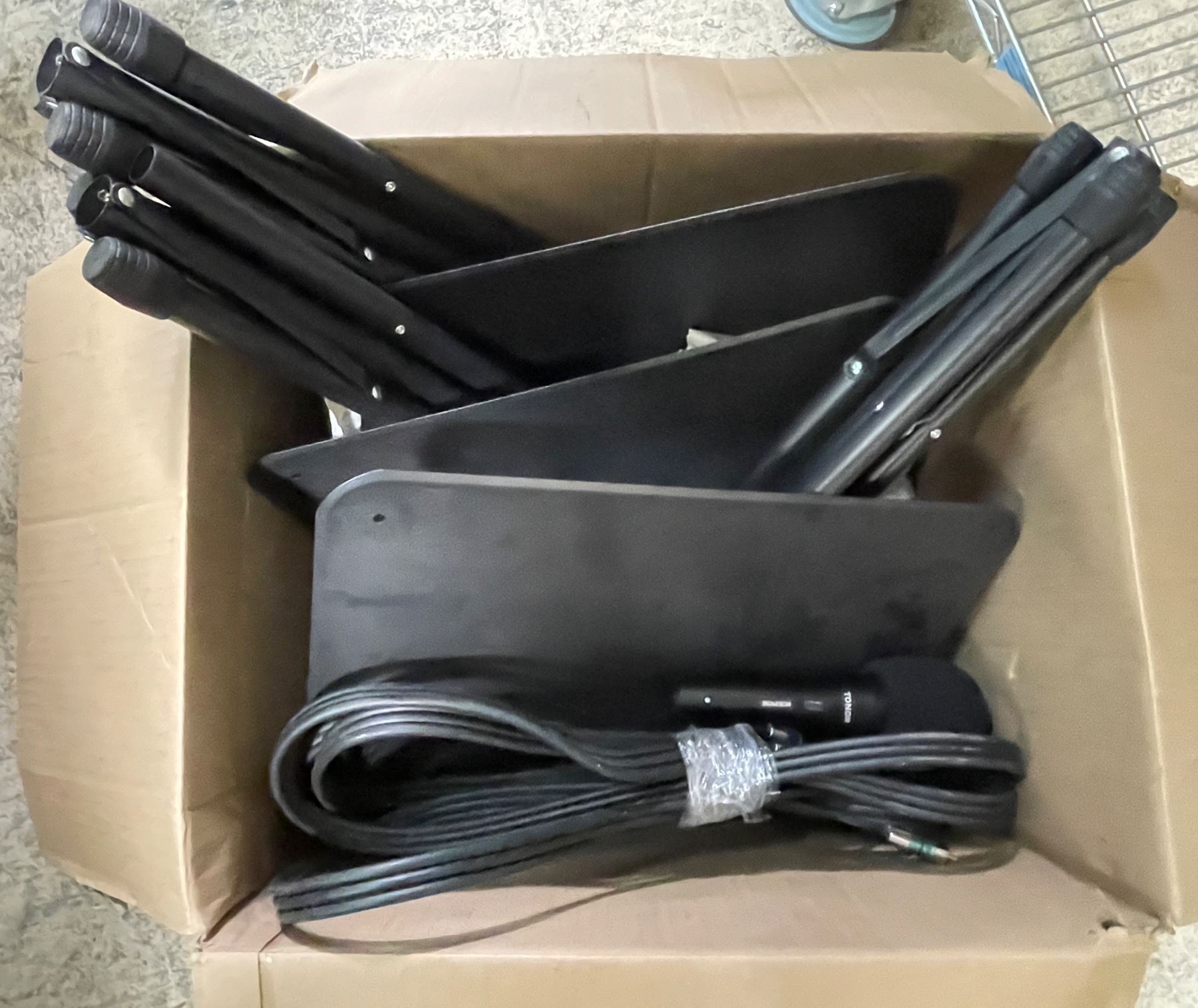 Shelf lof ot Misc - Box of Records, Various Lights, Music Stands, Etc.