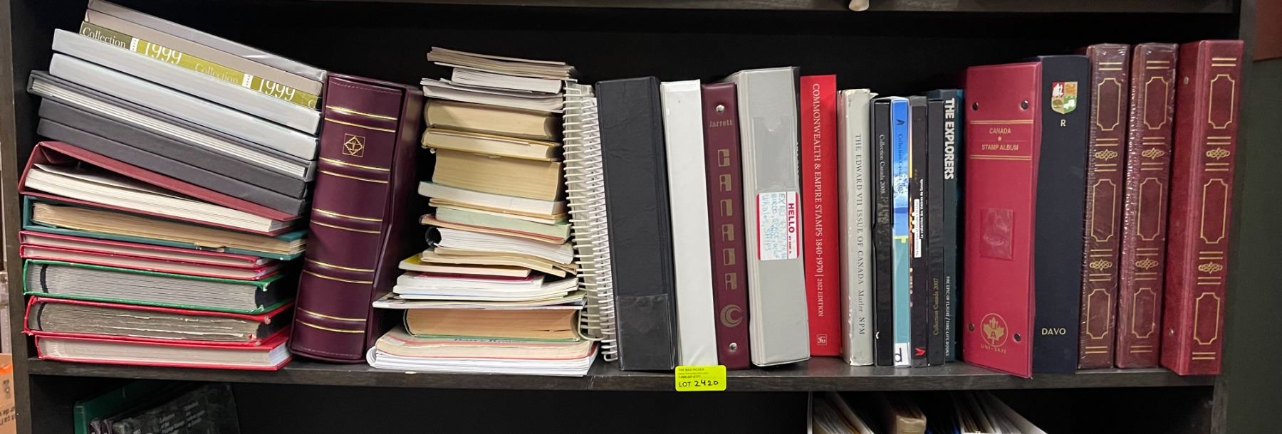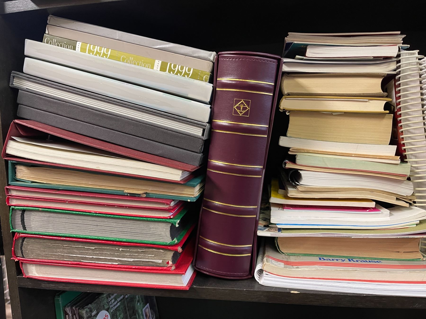 Shelf lot - Empty Illustrated and Non-Illustrated Stamp Albums