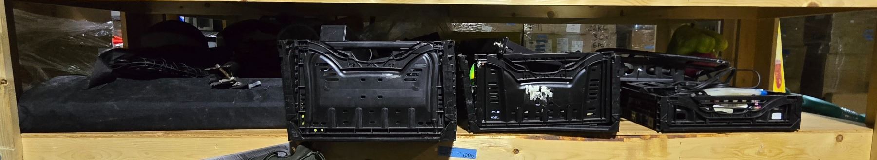 Shelf lot of Misc - Various Speakers, Small Basketball, Bike Seat, Etc.