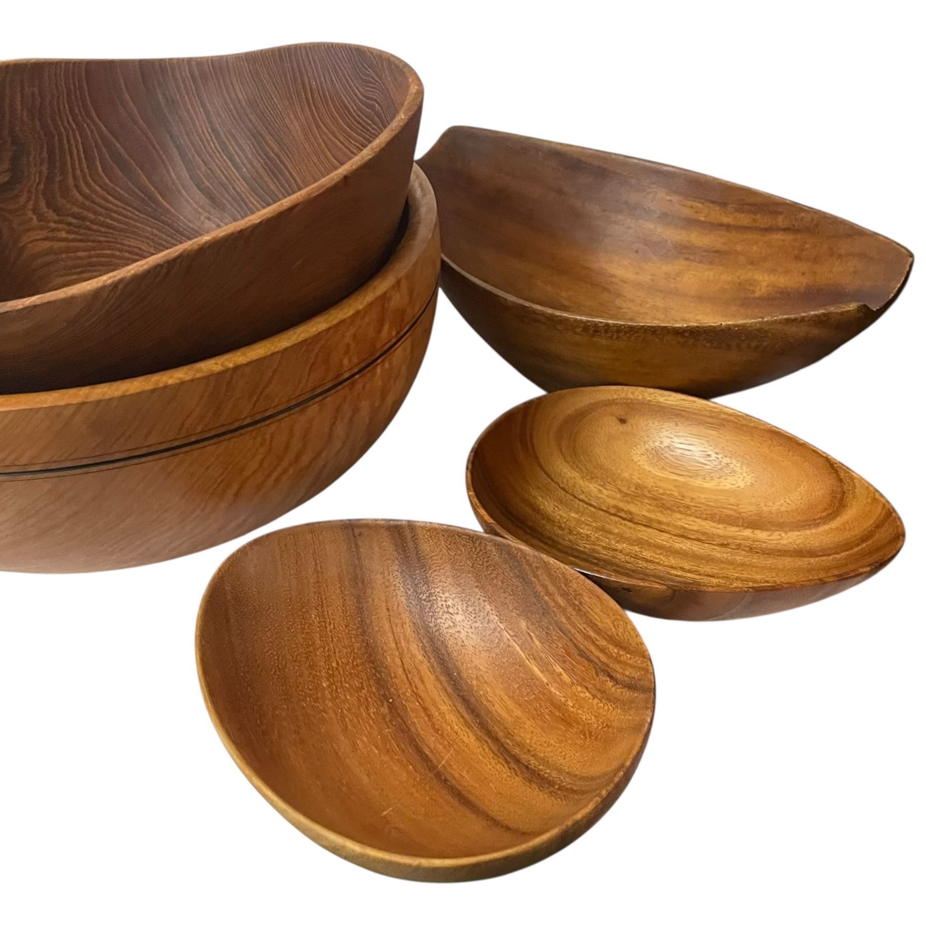 Shelf of Carved Wood Bowls, Figurines and a Coconut Head Leopard