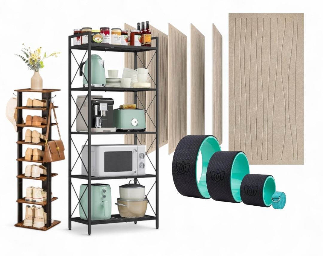 Shelf of Misc. BNIB - Shoe Rack, Polyester Fibre Printed Panels, Etc..