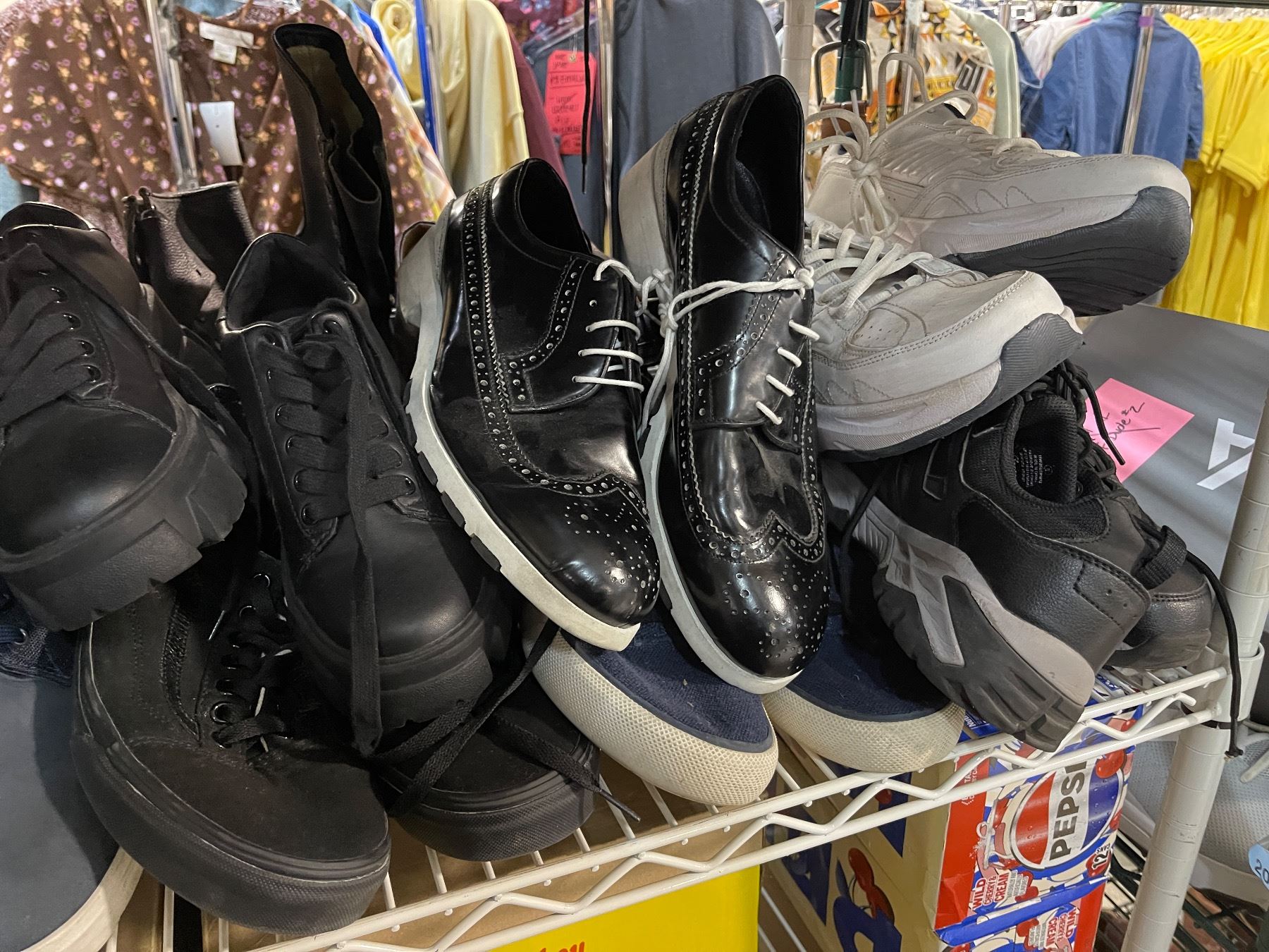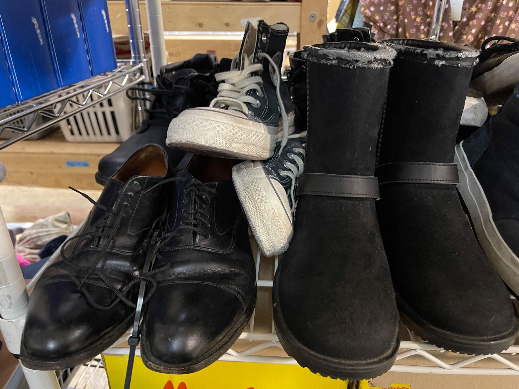 Shelf of Shoes Includes Includes Boots, Sneakers, and Dress Shoes - Various Styles and Brands
