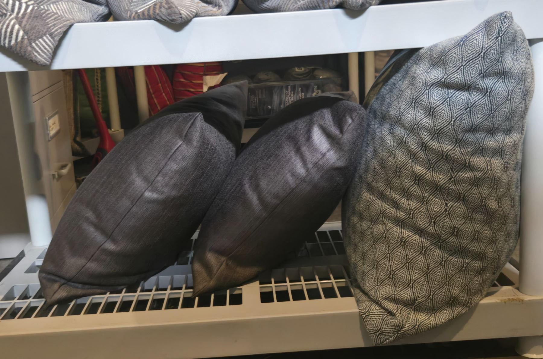 Shelf - x3 Throw Pillows - x1 Geometric Design & x2 Charcoal Color