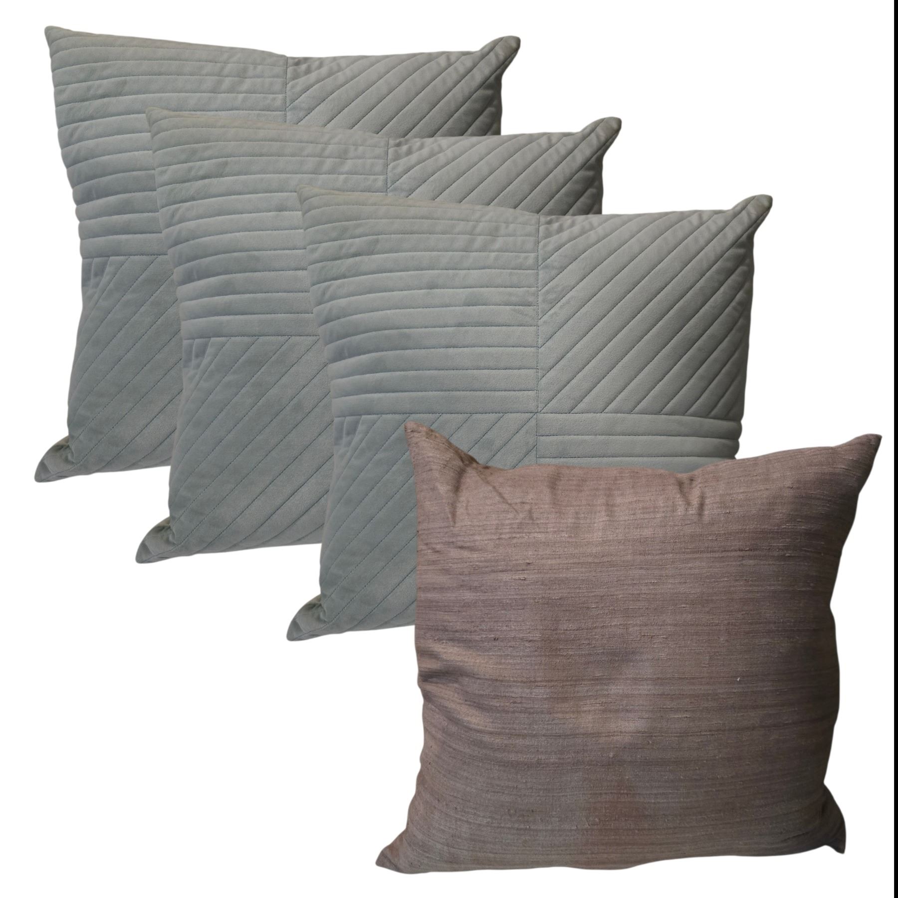 Shelf - x4 Throw Pillows - Mint Green Design (x3) & Light Purple / Marron