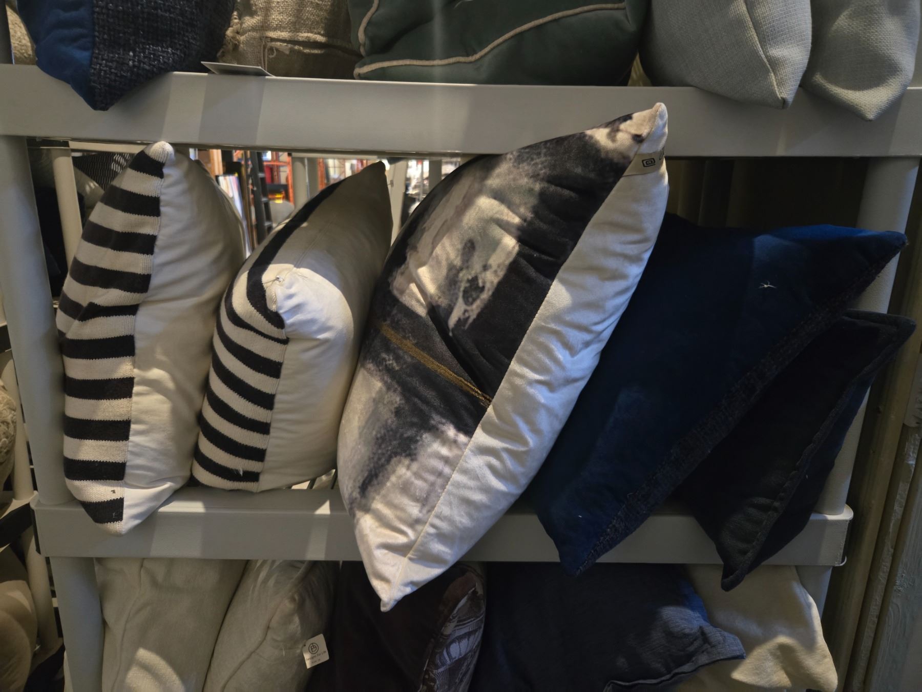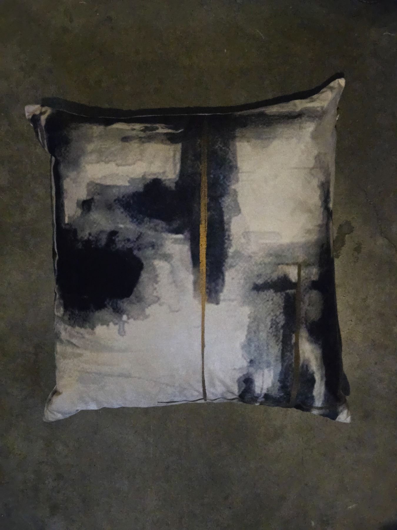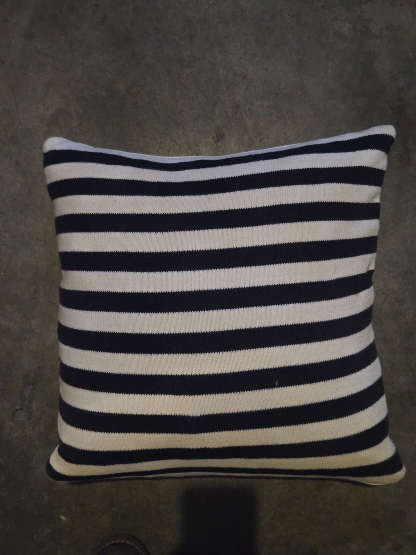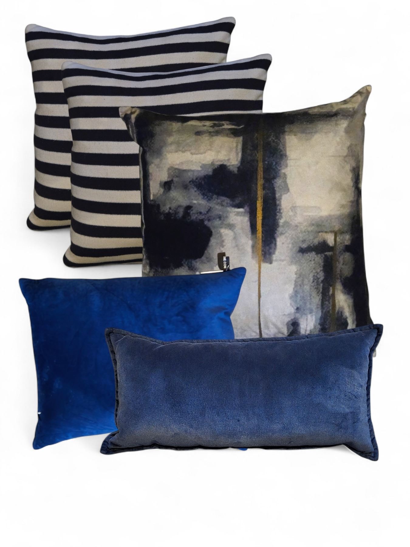 Shelf - x5 Throw Pillows - Black & White Striped, Abstract Design, Blue, Black