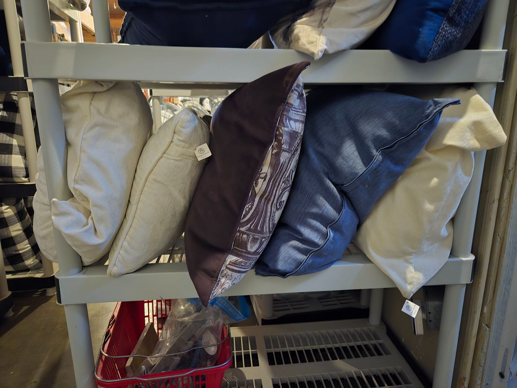Shelf - x5 Throw Pillows - White, Blue & Venetian Design