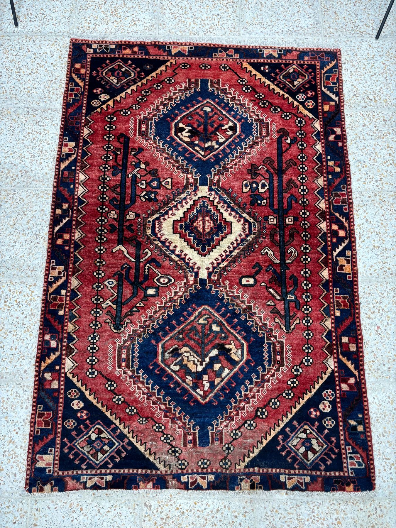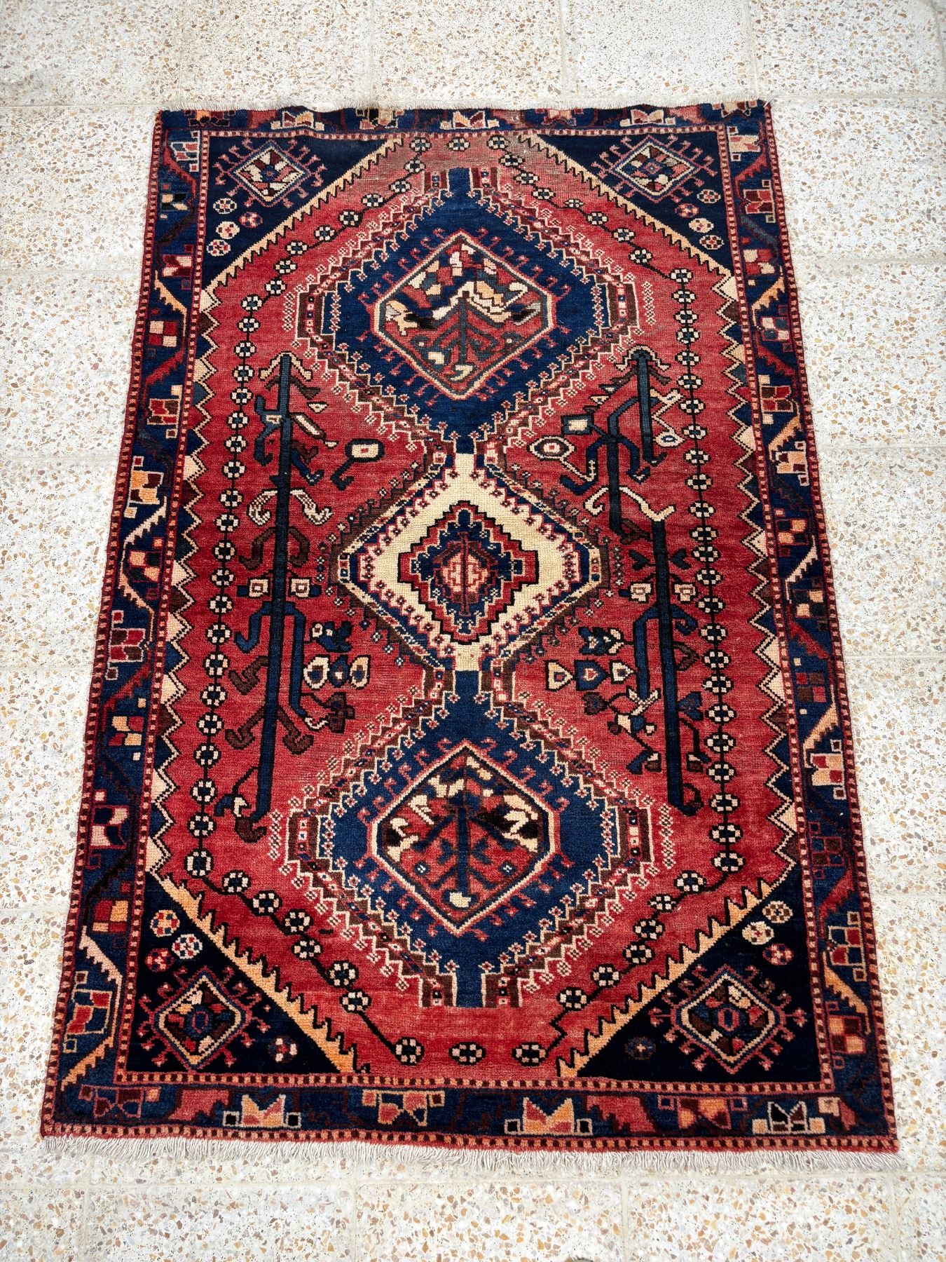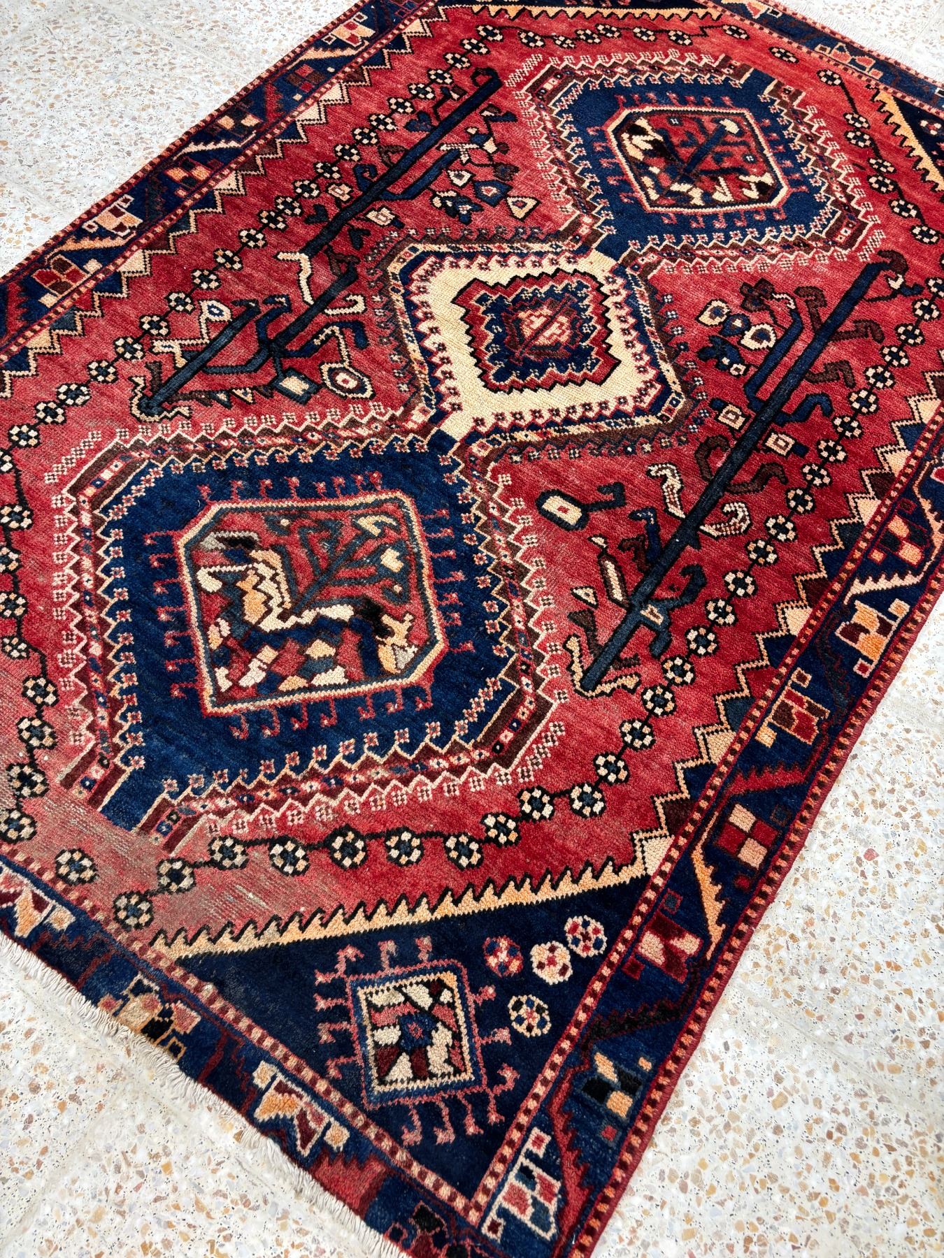 Shiraz - 100% Authentic Hand Knotted Wool Persian Rug - Handmade in Iran - 6.3" x 4 1" ft - No: 115