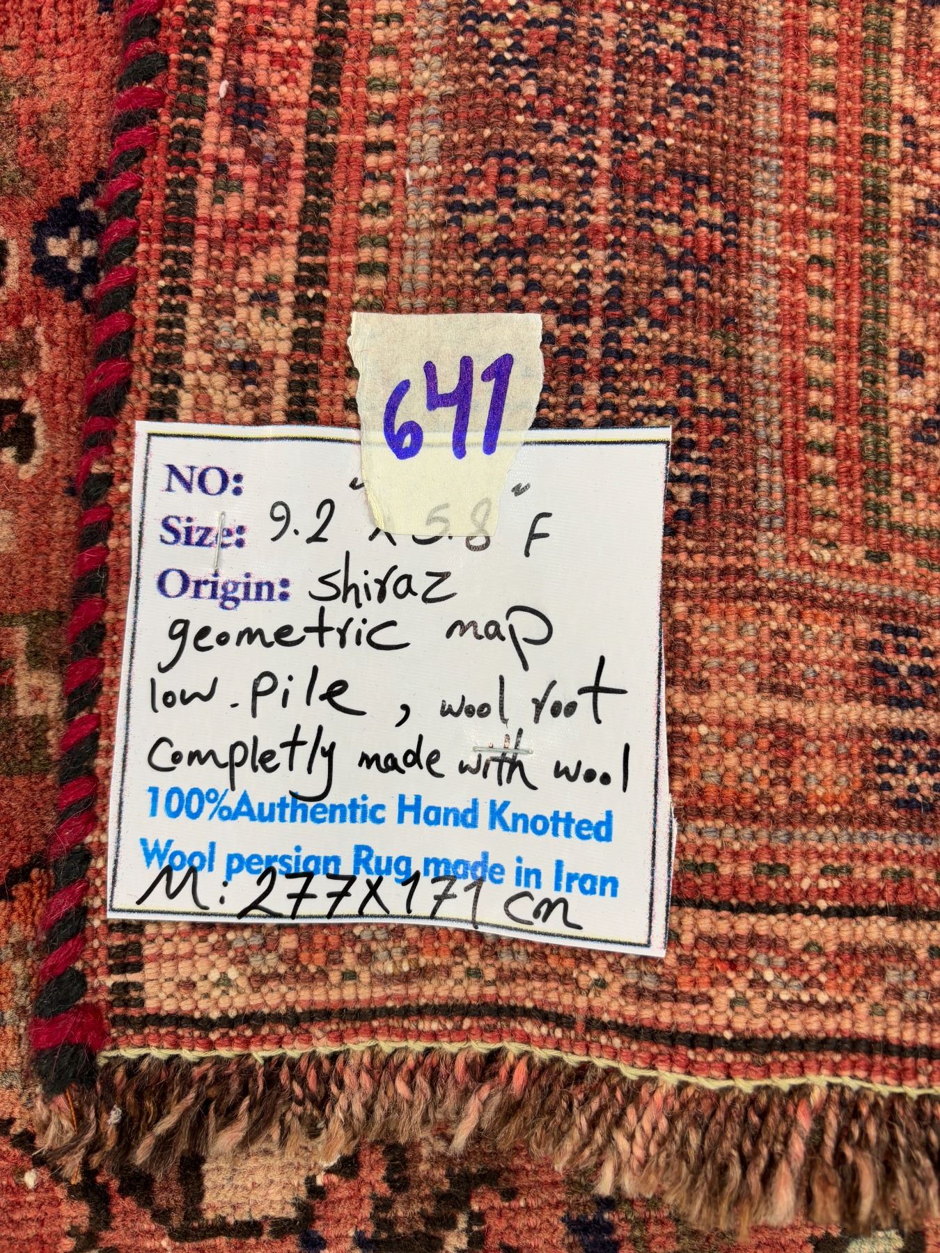Shiraz - 100% Authentic Hand Knotted Wool Persian Rug - Handmade in Iran - 9.2" x 5.8" ft - No: 89