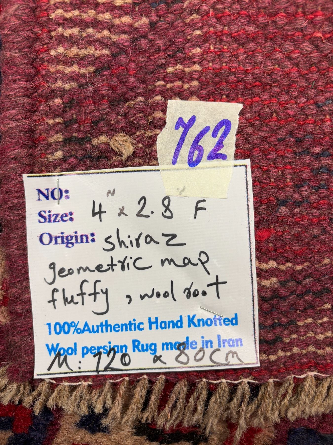Shiraz 100% Authentic Hand Knotted Wool Persian Rug Handmade in Iran geometric map Fluffy carpet root (These carpets have been washed professionally, and for this reason there are no 3tears or dirt in this carpet and it will be delivered to you clean and smooth. Don't miss the opportunity to buy such a carpet) Size: 4' × 2.8'