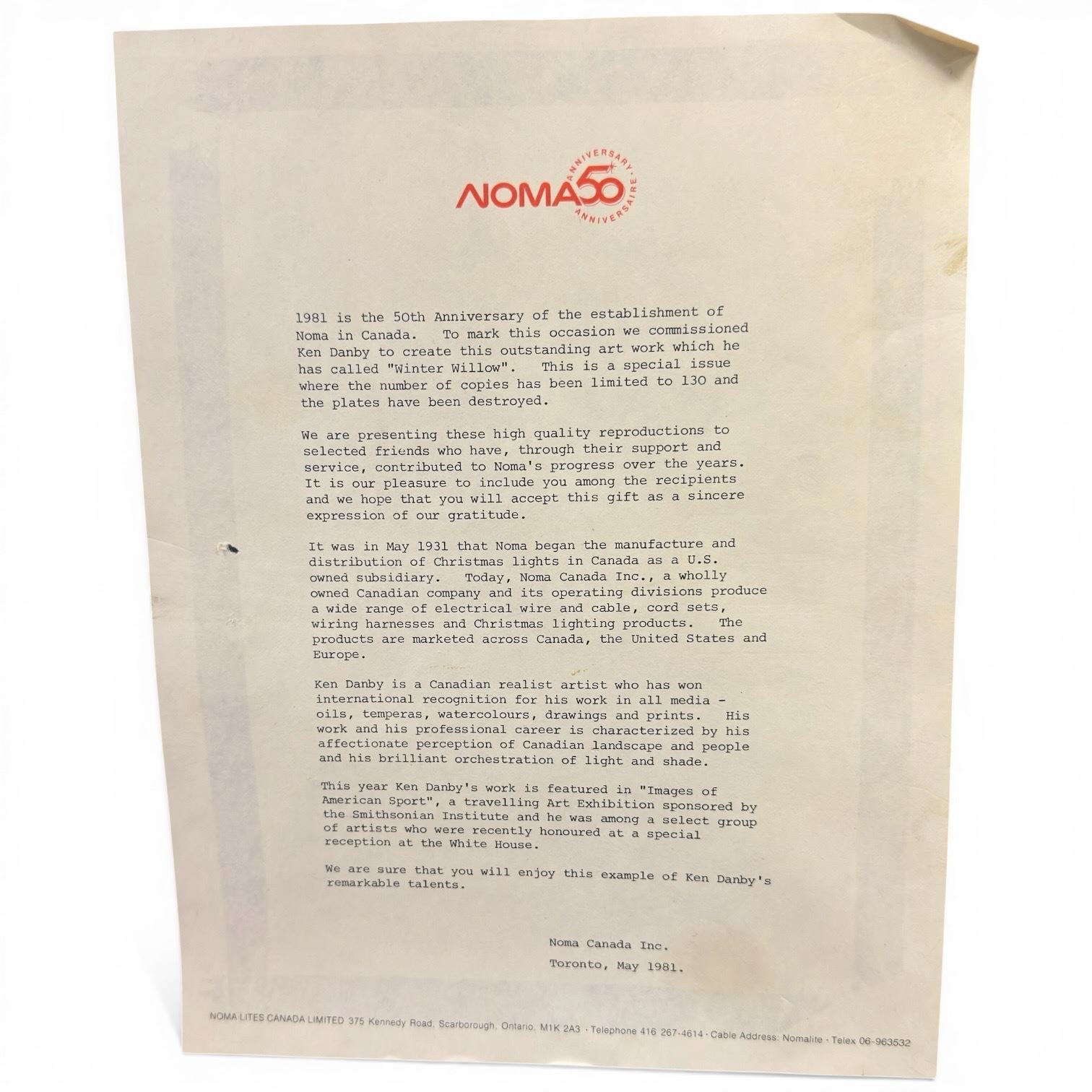 Signed 1981 Ken Danby "Winter Willow" Ltd. Editon Print for NOMA 130 Print Run (triple matted in a 28" x 25" frame)