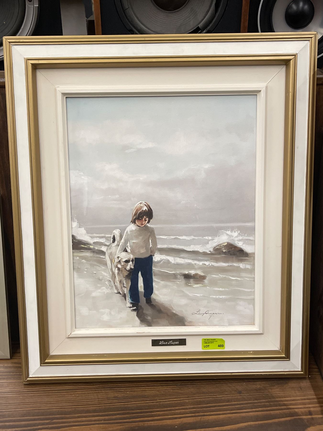 Signed Original Lise Auger Oil Painting on Canvas "Patrice et Son Ami" (Frame dimensions:25" x 30") French Canadian Artist