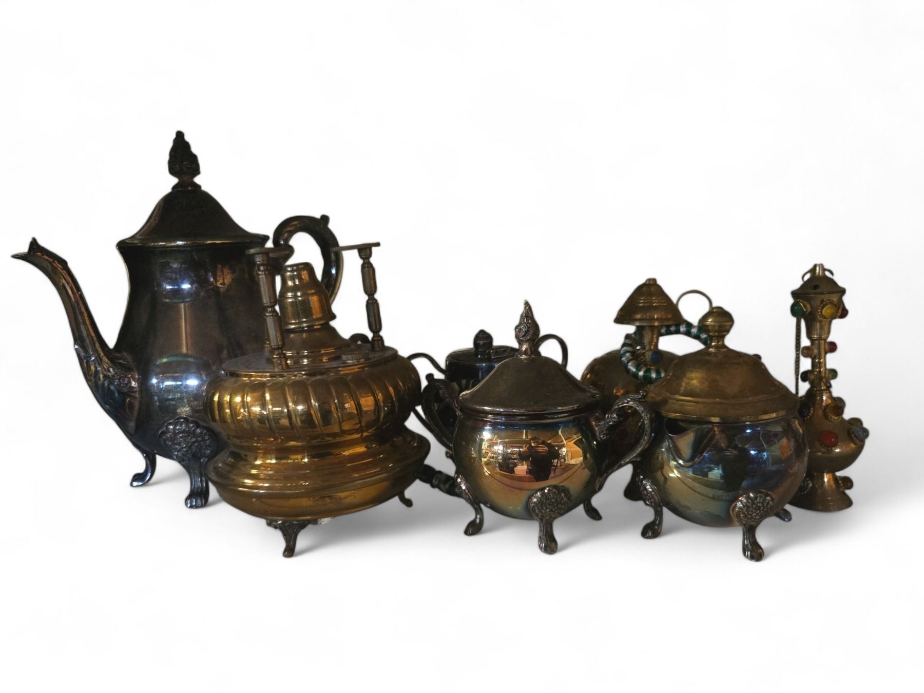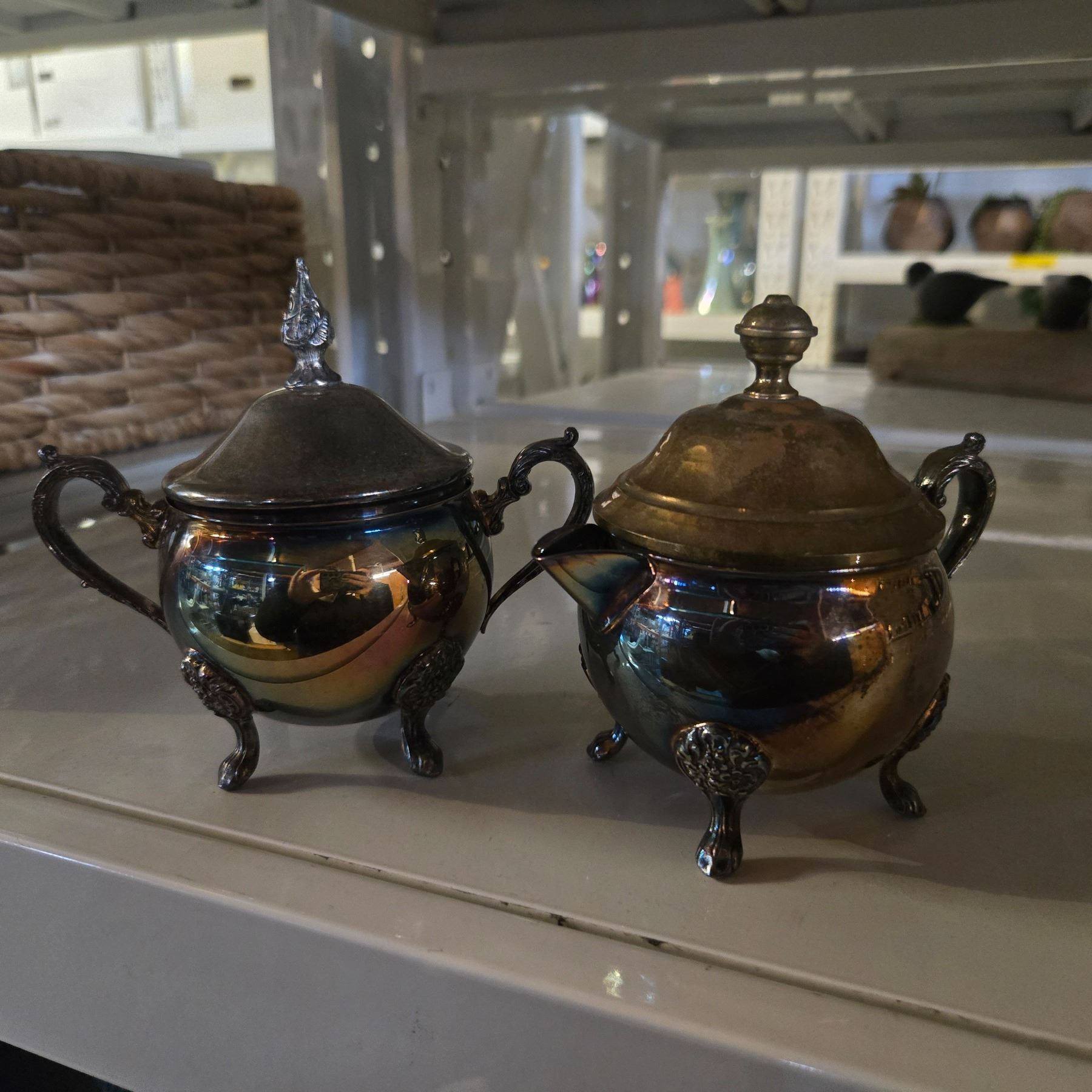 Silver Serving Ware Including Teapot, Creamers, Trays, Bowls, Cups, Etc.