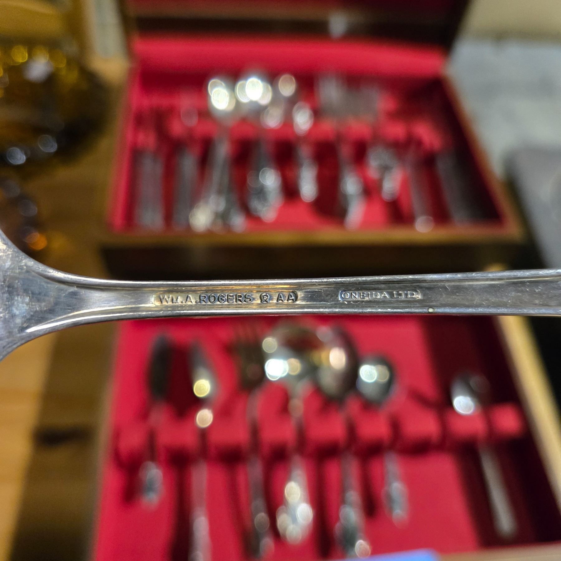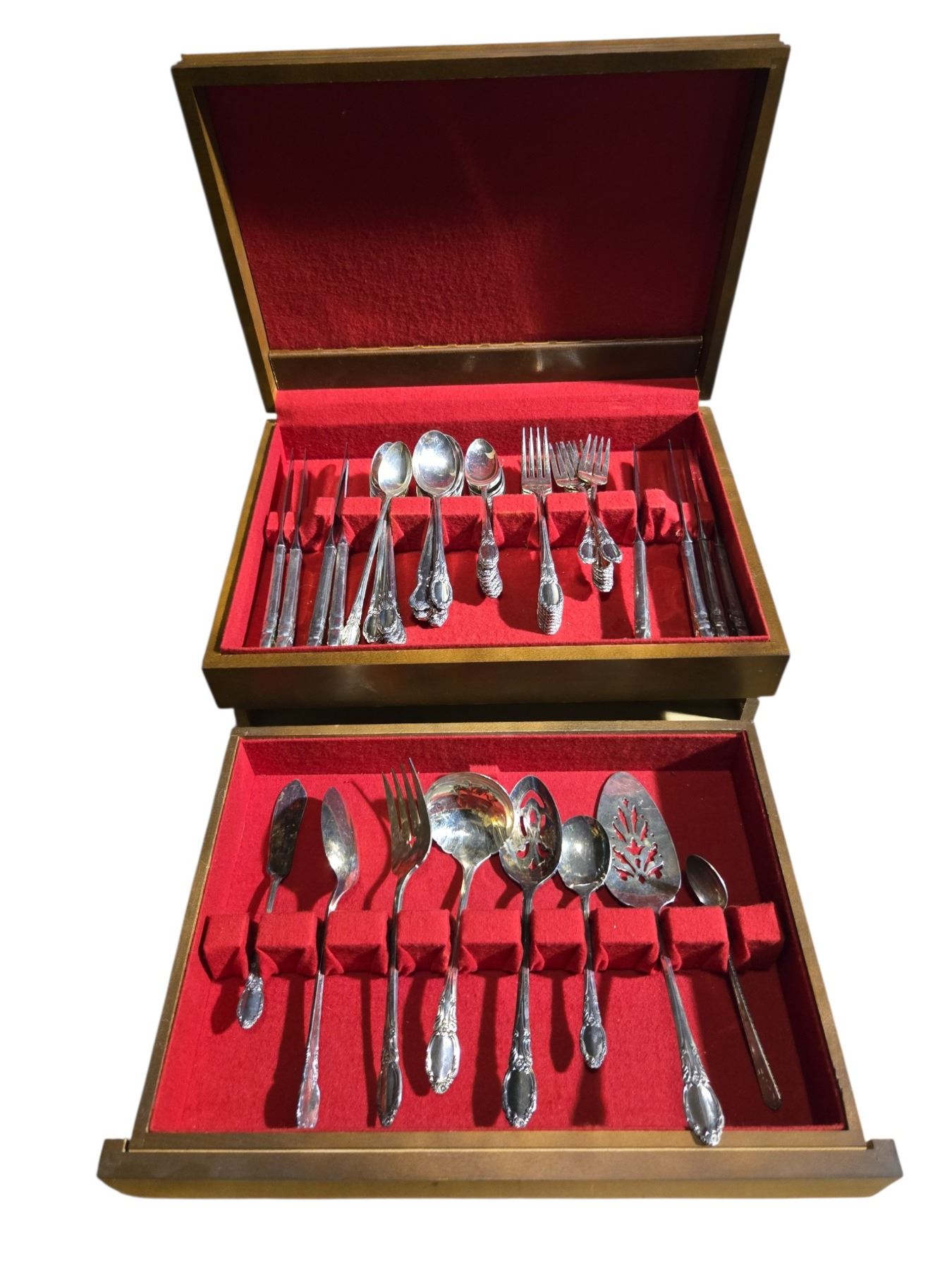 Silverplate Flatware & Serving Utensils Set in Wooden Case