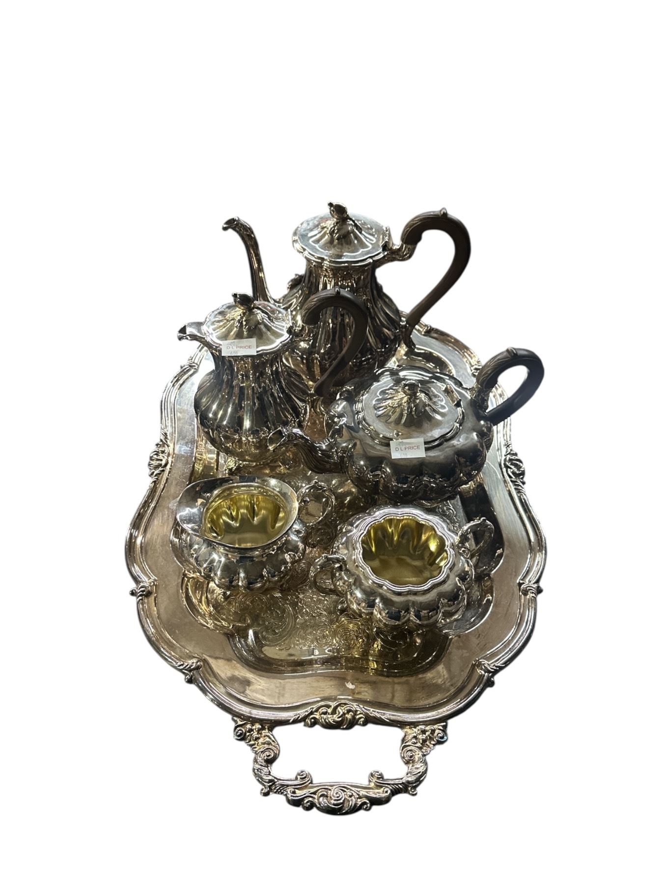 Silverplate Tea & Coffee Services Set w/Serving Tray, Creamer & Sugar Bowl