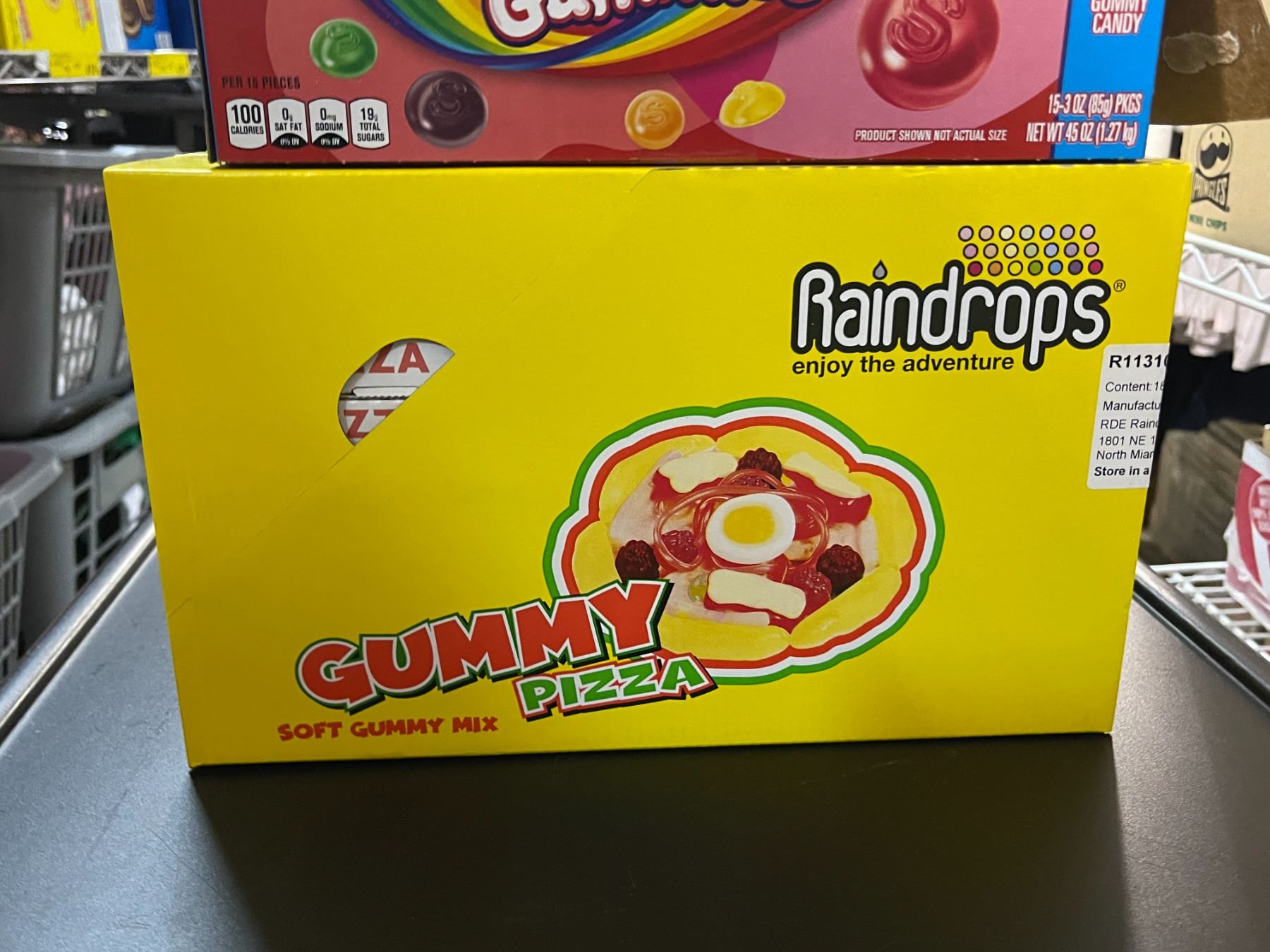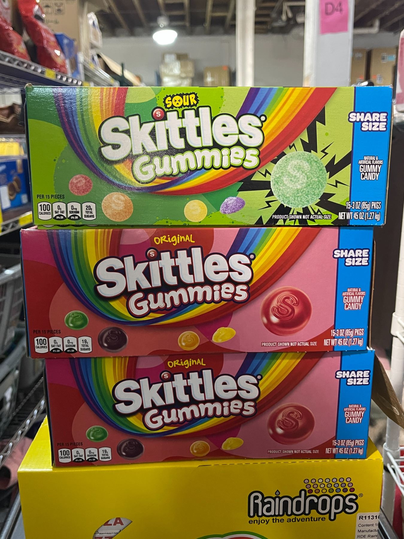 Skittles Original & Sour Gummies 3 x 15-Pack (Best Before Dec 2025) and 1 Case Raindrops Gummy Pizza Candy (Best Before 12/2025)