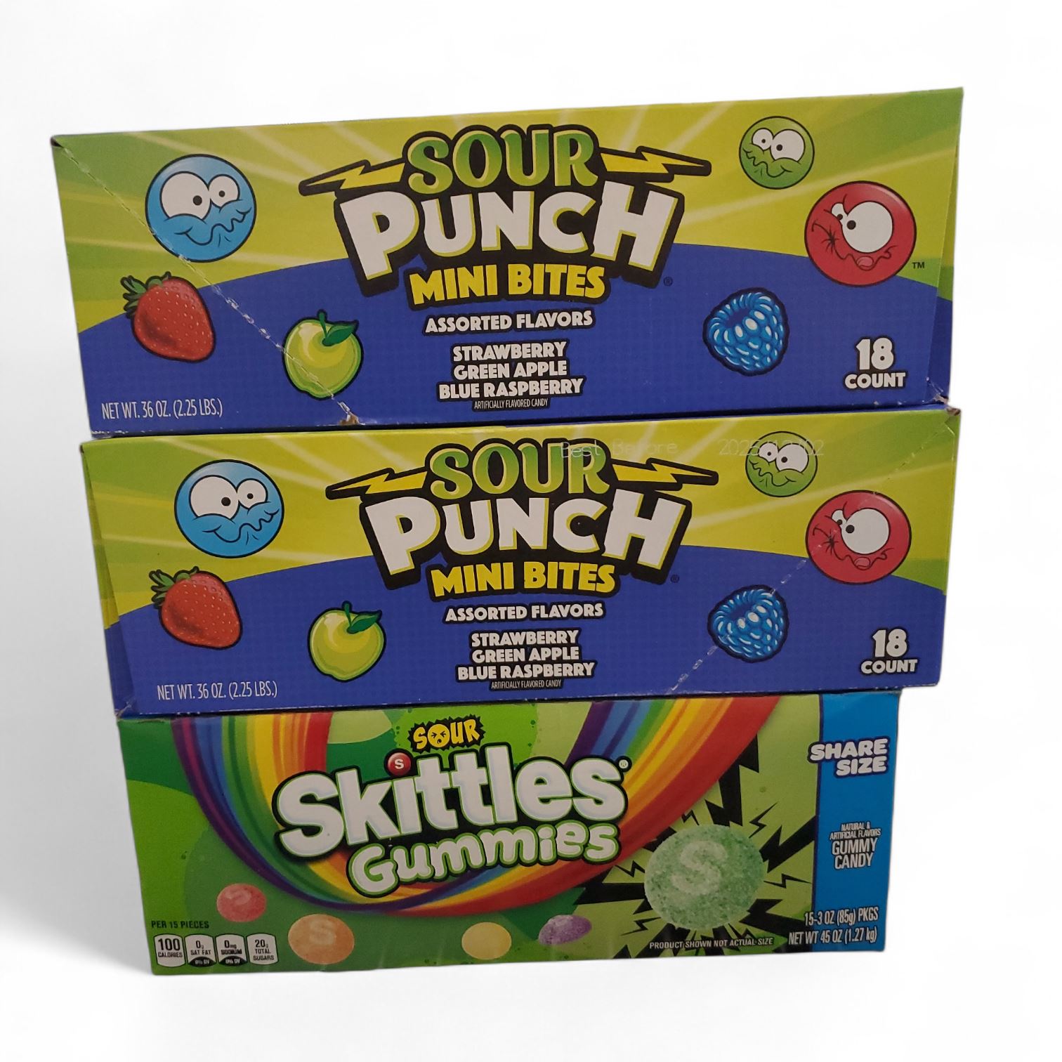 Skittles Sour Gummies, 15-Pack (Best Before Dec 2025) and Sour Punch Mini Bites 2 x 18 Pack (Best Before Dec 2, 2025)