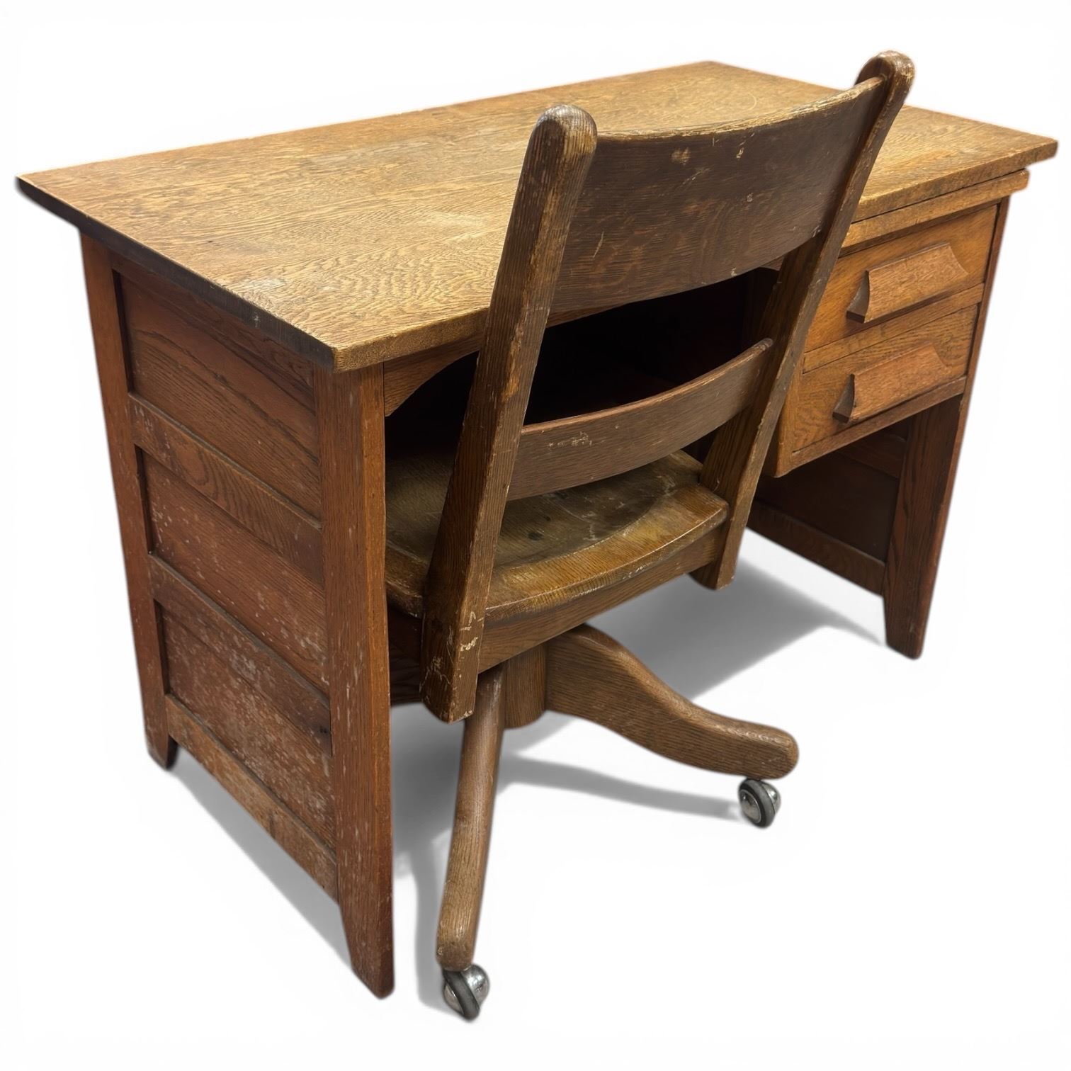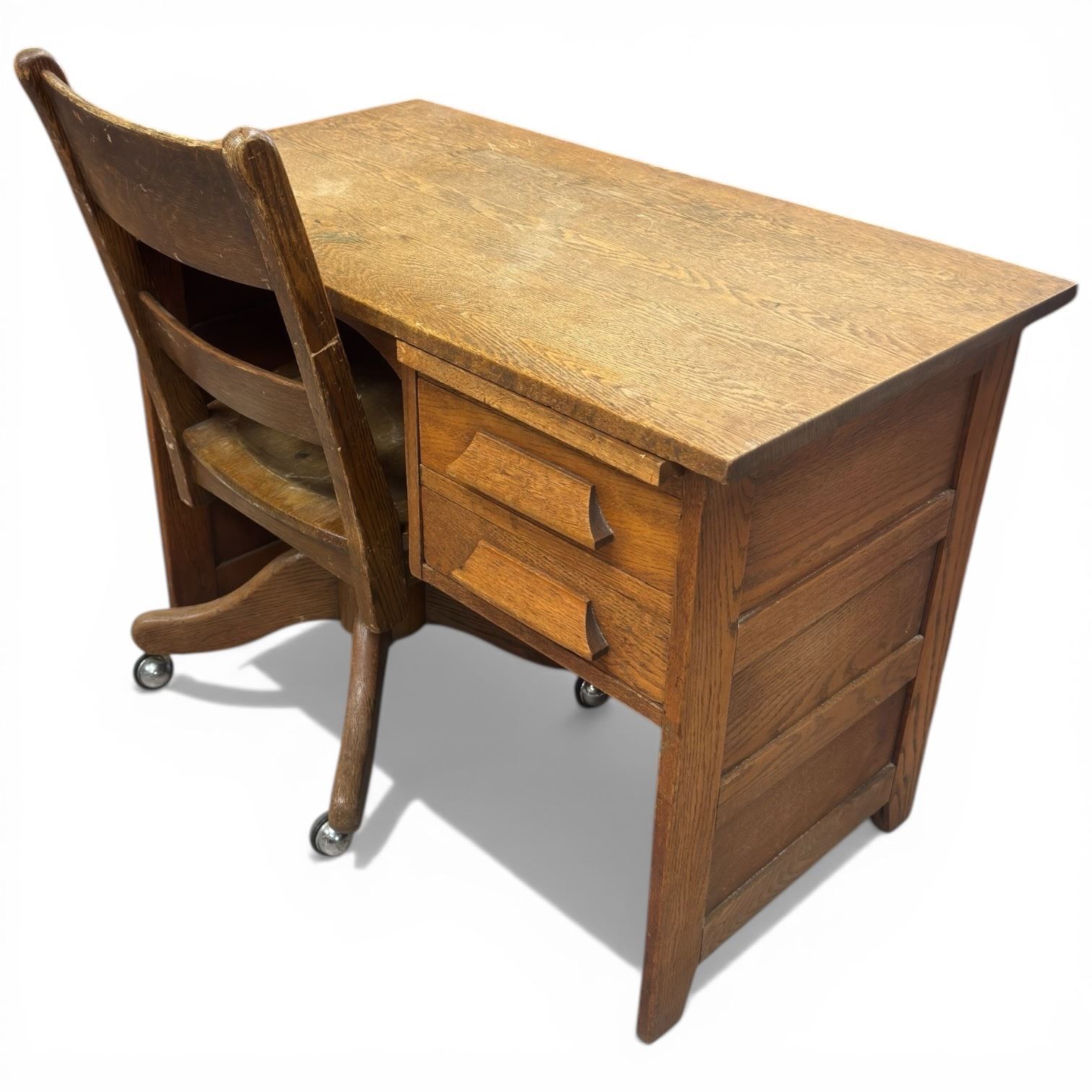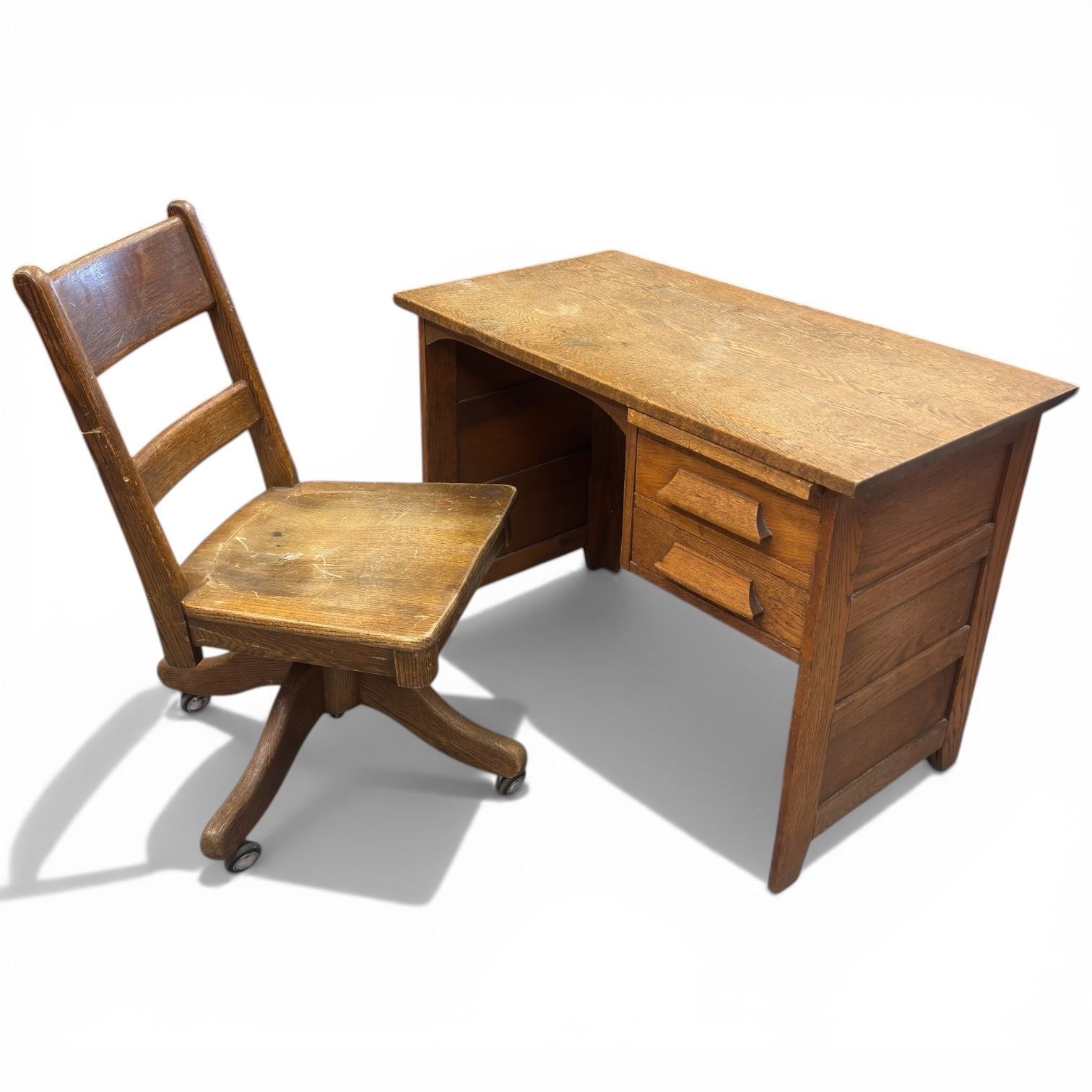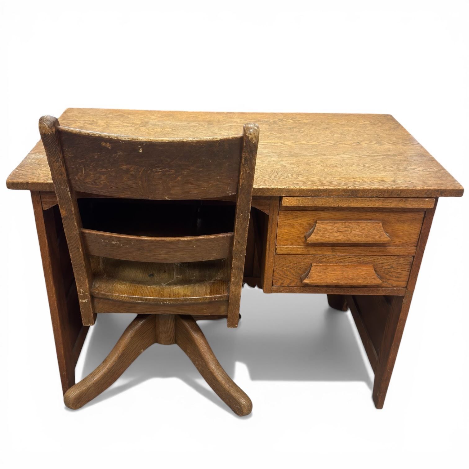 Small Vintage Oak Desk and Chair (20" x 36" x 26" tall)