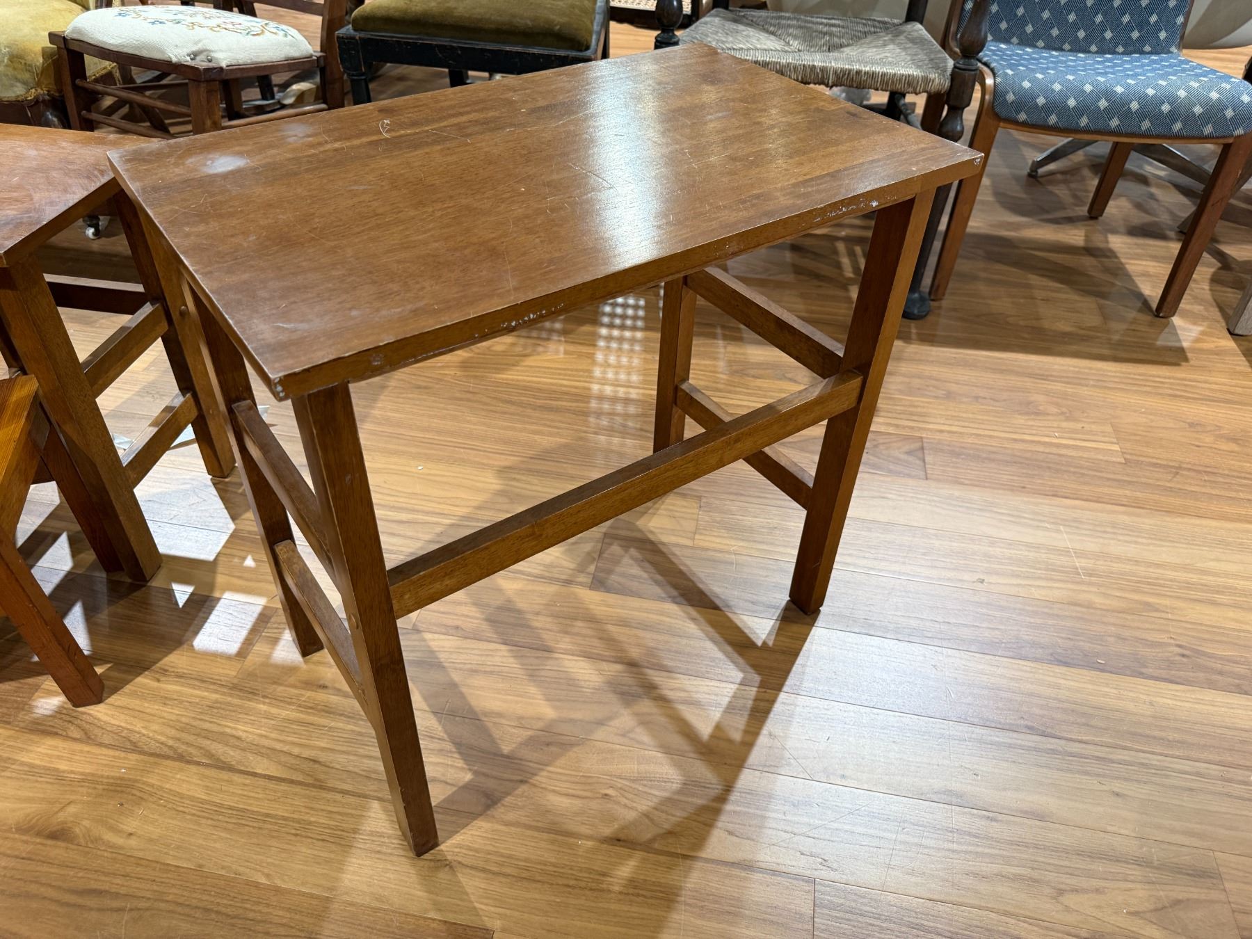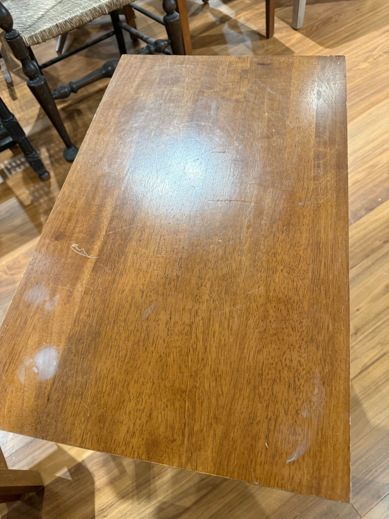 Small wood side table with dimensions of 26-Inch length, 16-Inch width, and 25-Inch height. Constructed from wood, suitable for various uses such as a bedside or accent table. Item is as pictured.