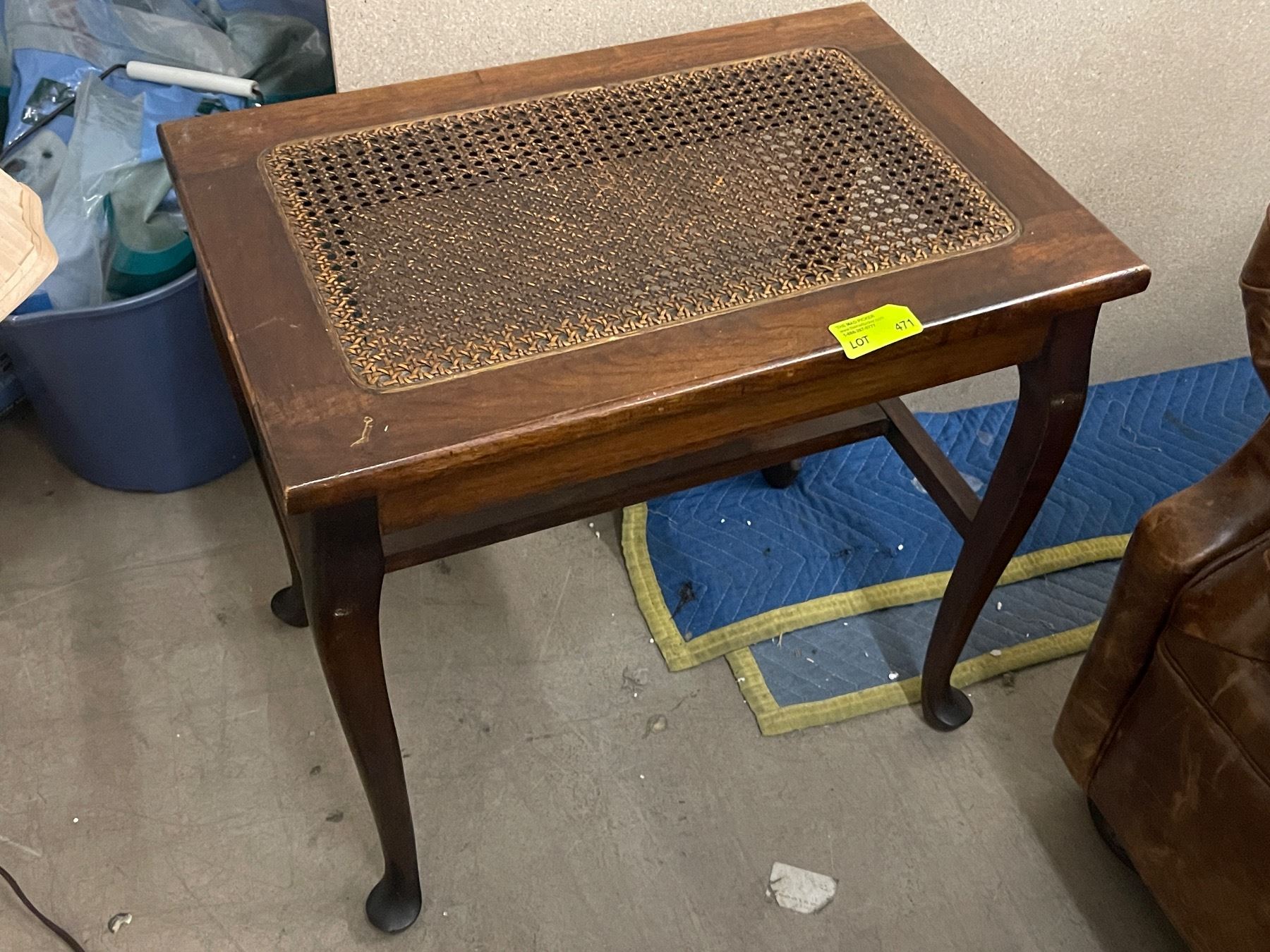 Small Wood Side Table with Rattan Insert & Cabriole Legs (15" x 21" x 19" tall)