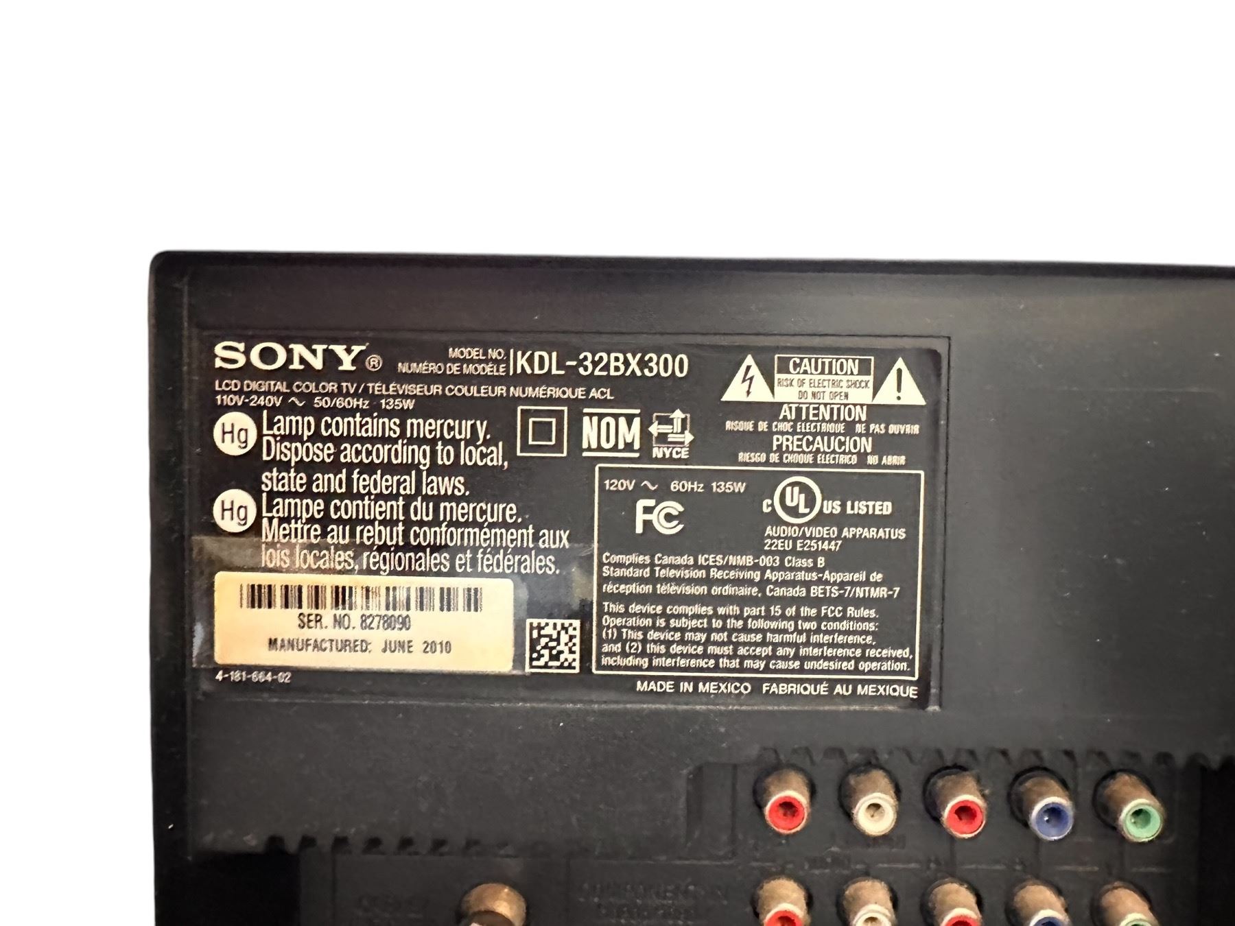 Sony Bravia KDL-32BX300 32" TV w/ Remote (Tested Working)