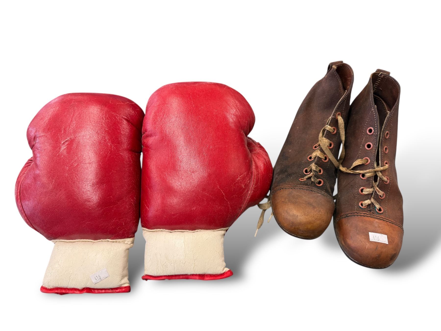 Sports Equipment: Antique Football Cleats & Vintage Boxing Gloves