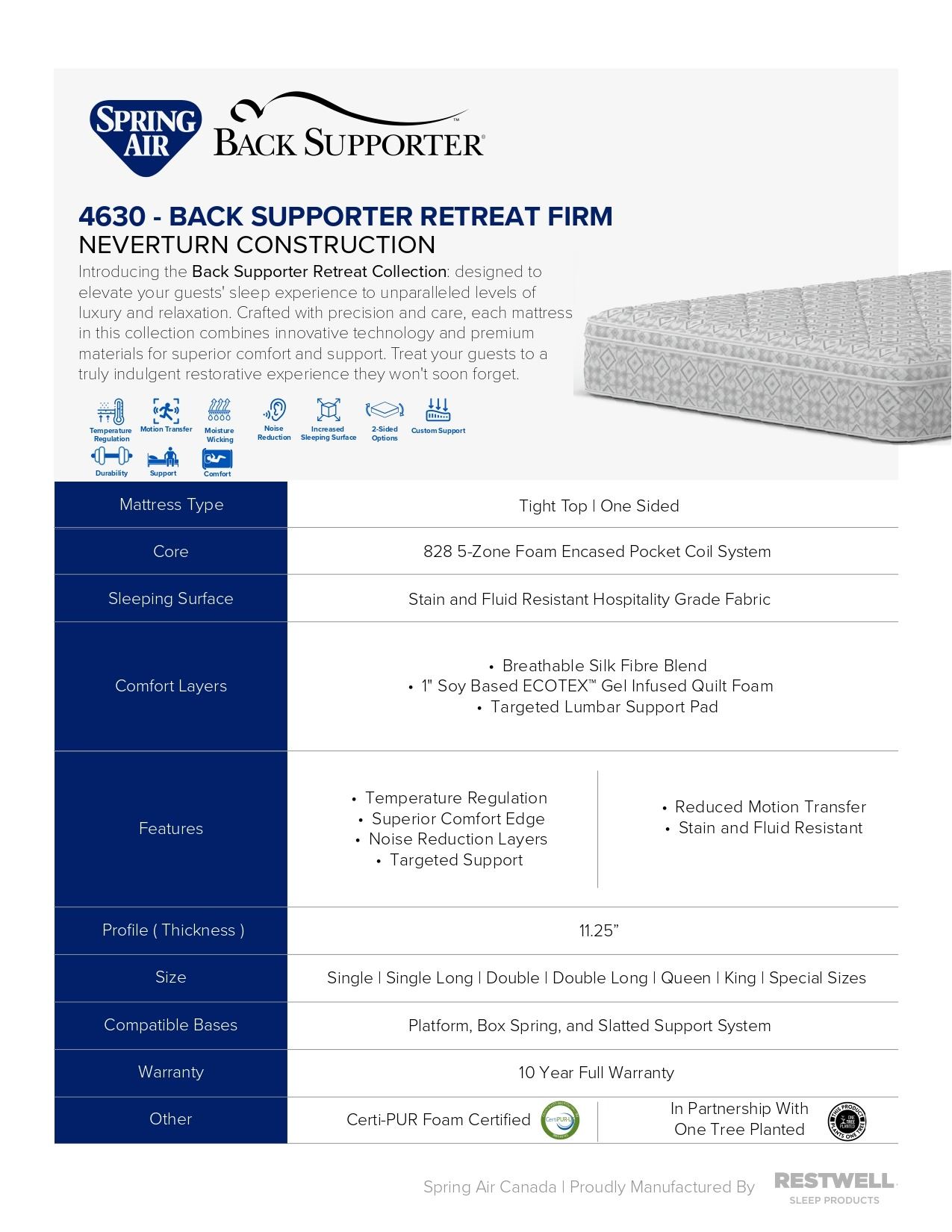 SpringAir Retreat D XL - Back Supporter Retreat Firm Double XL Mattress - Retail $900