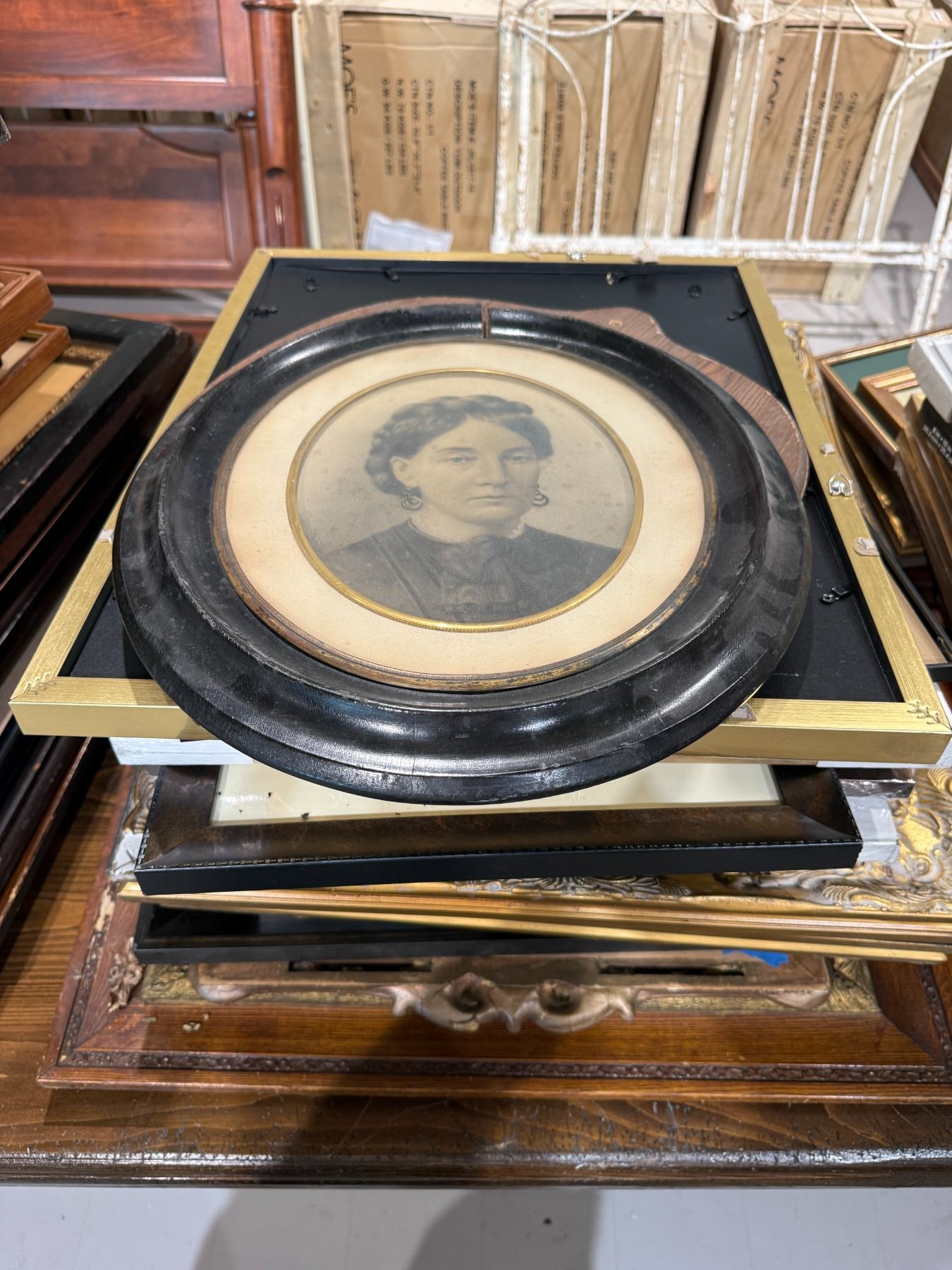 Stack of Assorted Picture Frames * Wide range of sizes, materials, and eras * Majority are empty