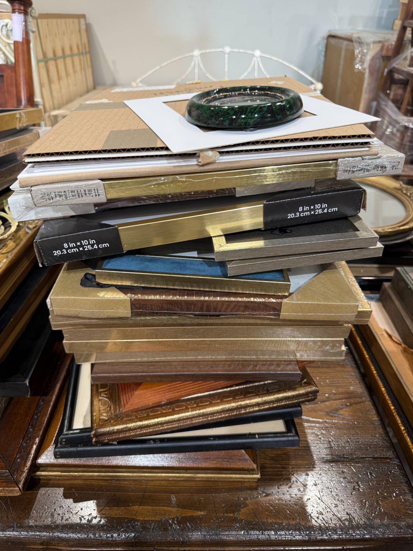 Stack of Assorted Picture Frames * Wide range of sizes, materials, and eras * Majority are empty