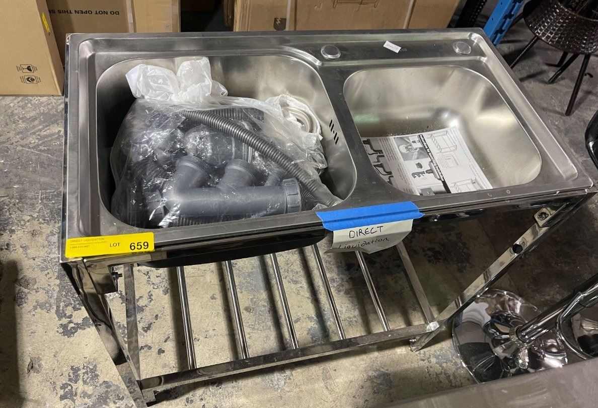 Stainless Steel Double-basin Sink, Approx. H33" x W32" x D17"