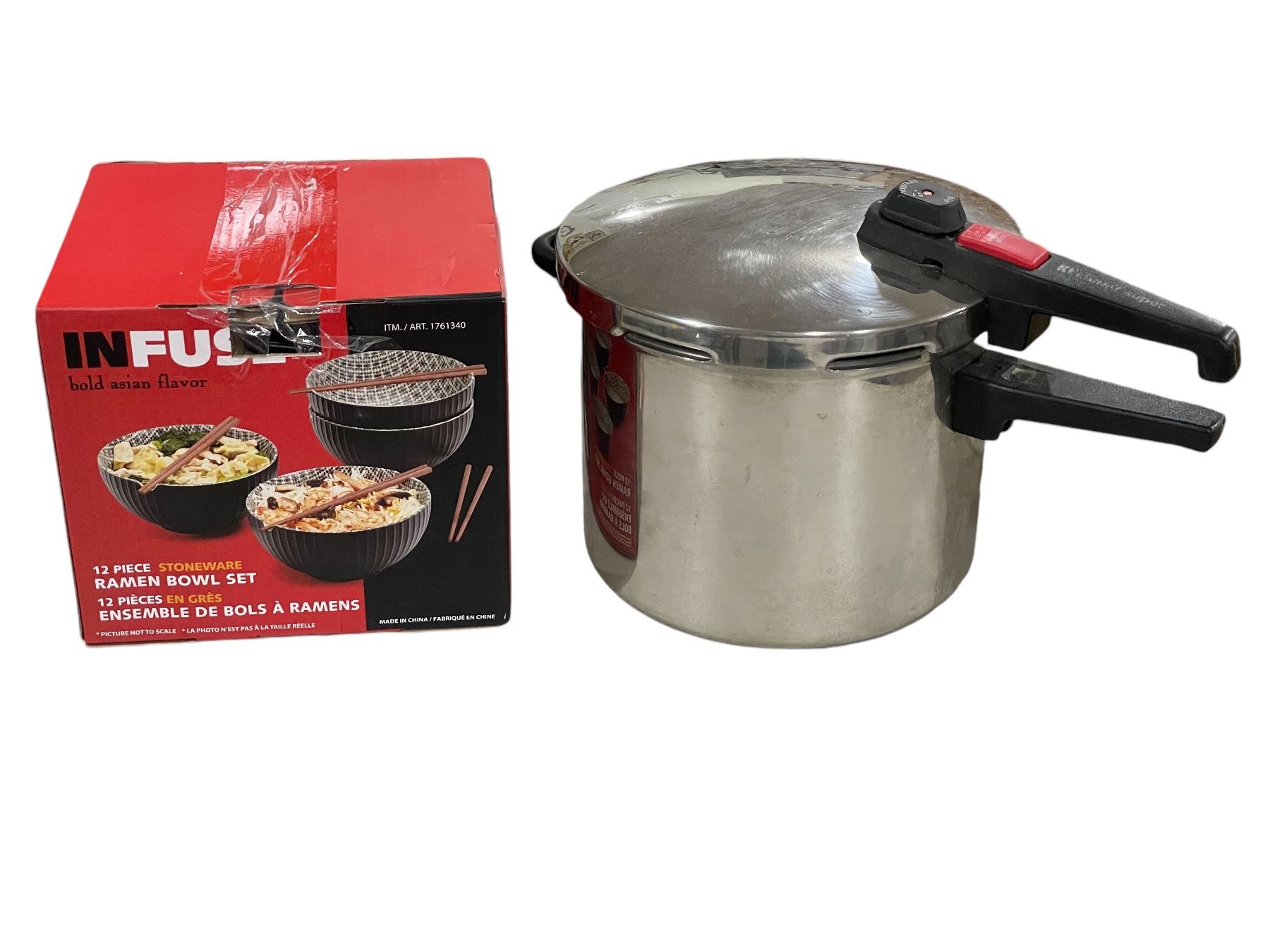Stainless steel cooking pot w/ 12 pc ramen bowl set