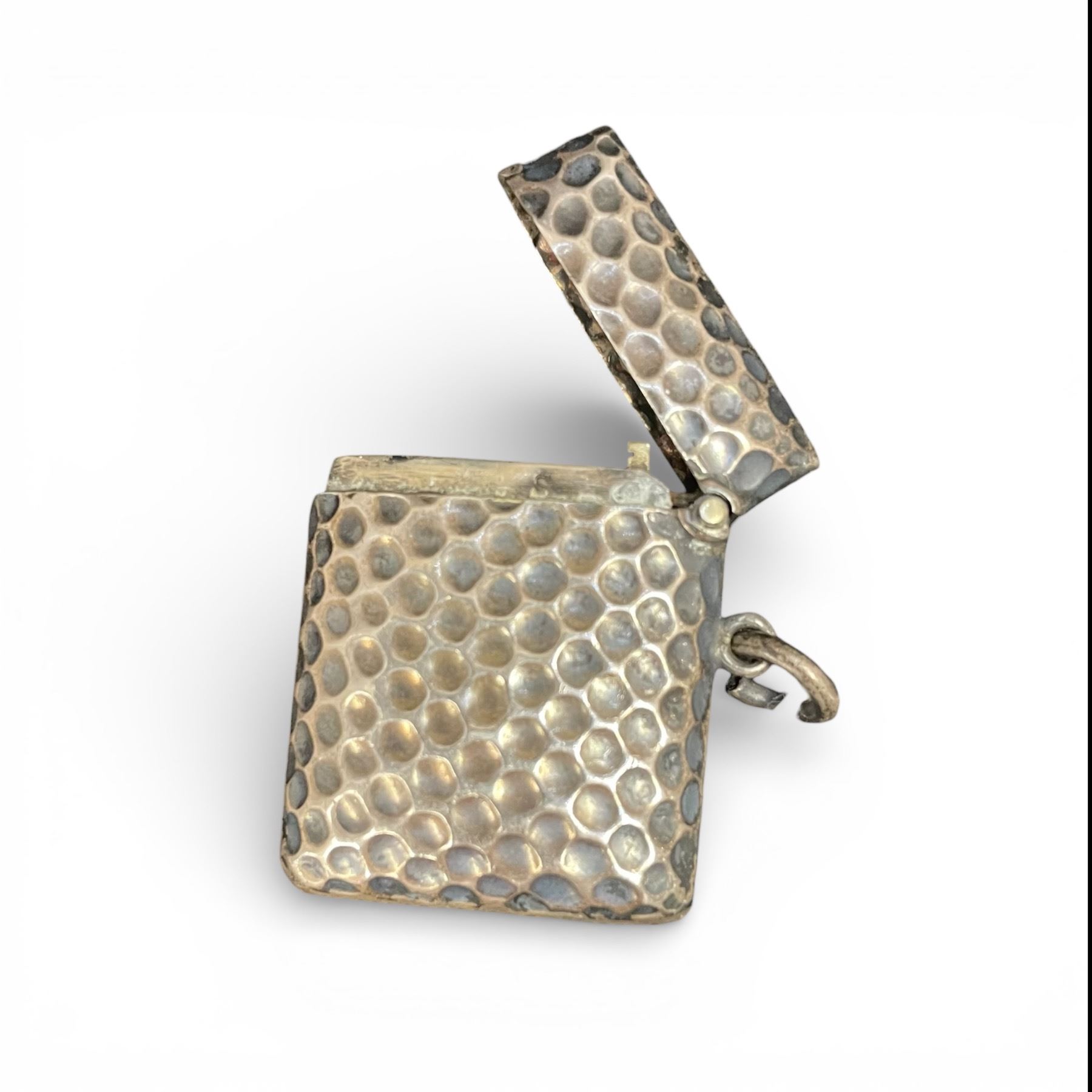 Sterling Silver Arts & Crafts Hammered Finish Vesta Case * British Hallmarks * Weight: 18.3 grams