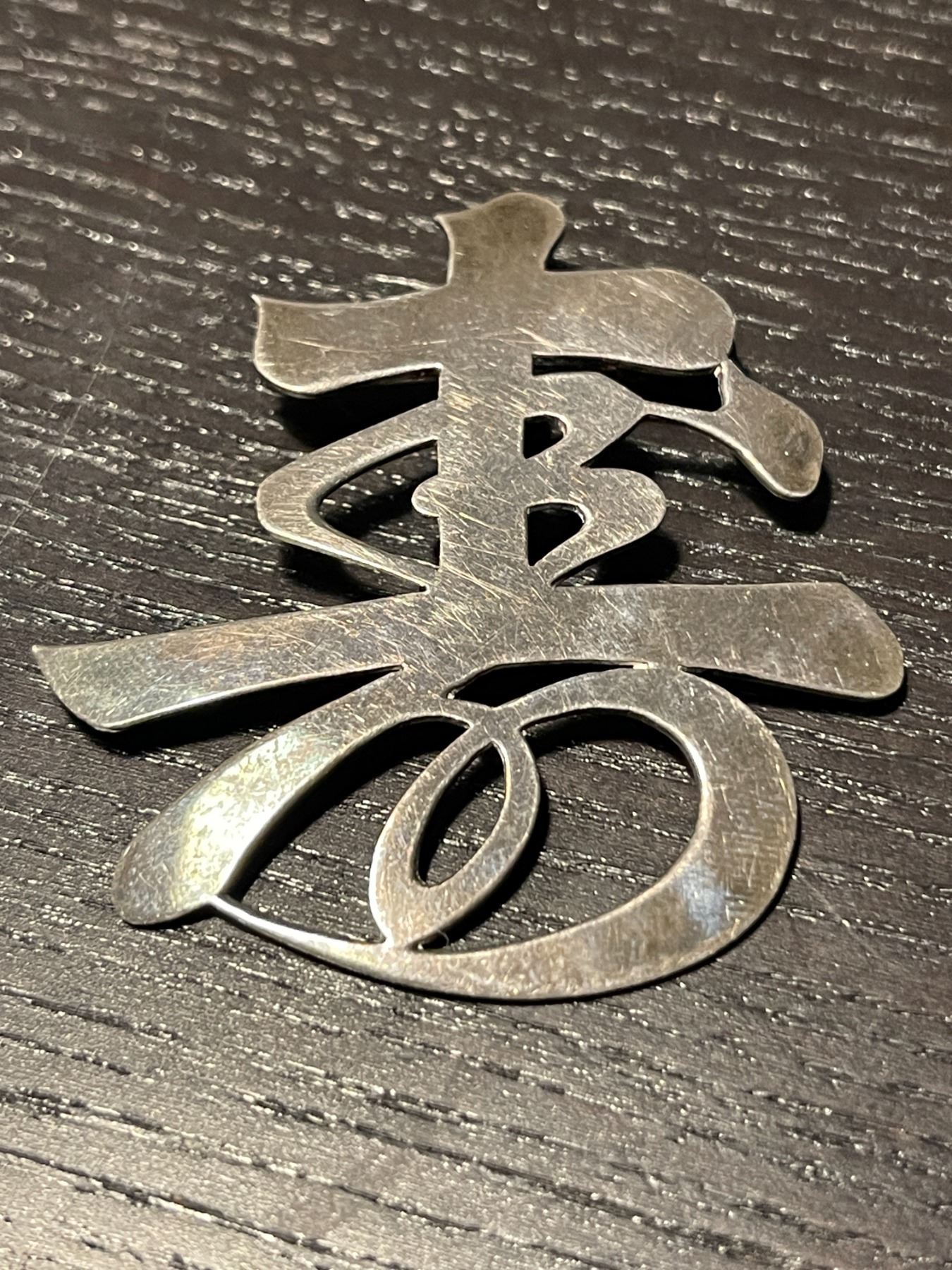 Sterling Silver Chinese Character "Long Life" Brooch - 2" x 2.5" - Weight: 11.5 grams