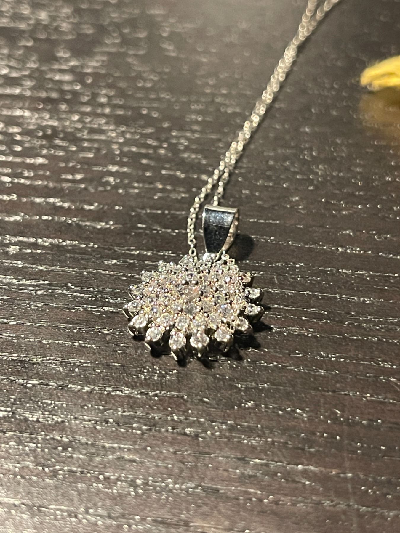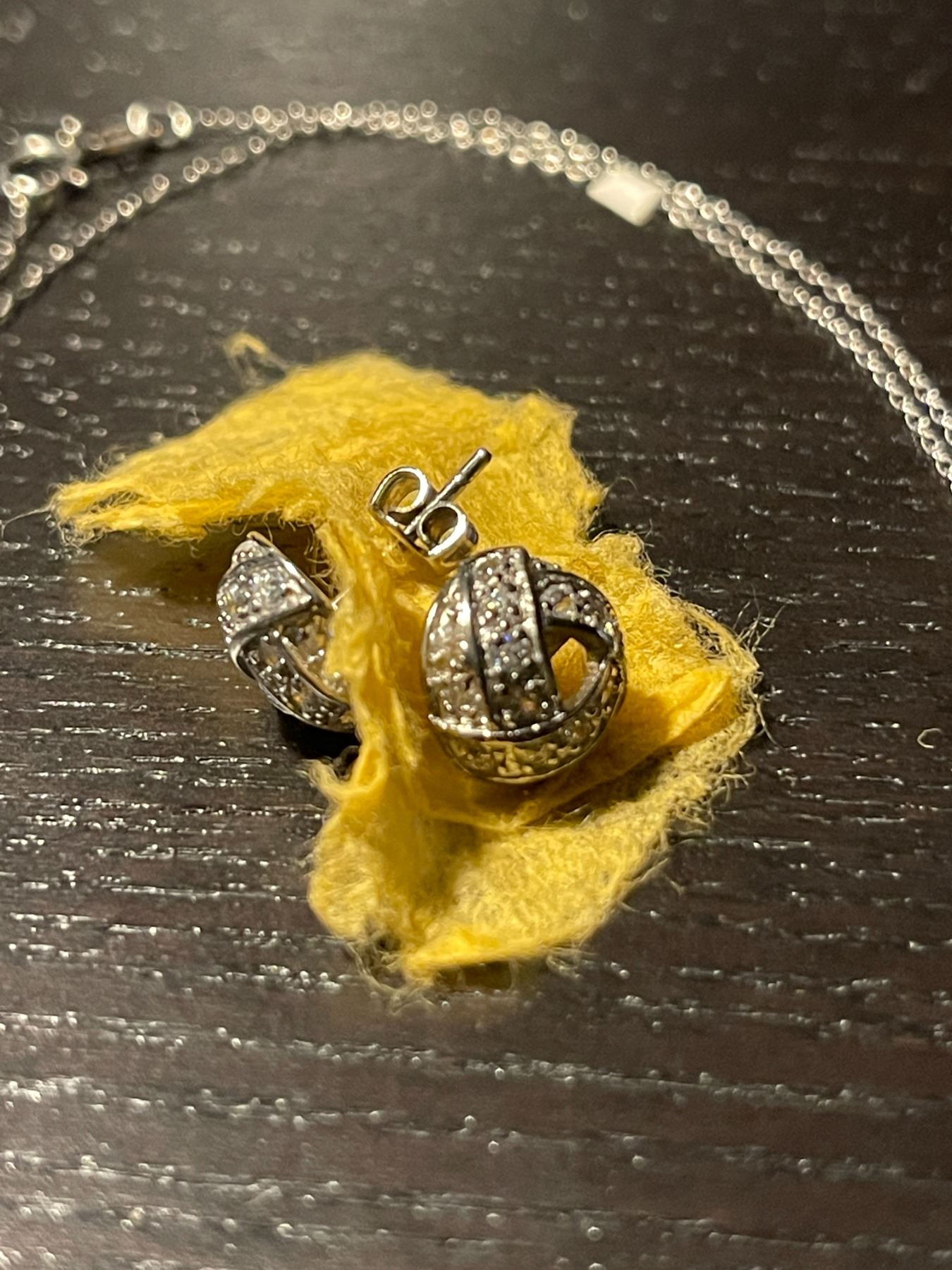 Sterling Silver Crystal Necklace and Pierced Earrings - Pendant is .5" diameter on a fine 18" chain